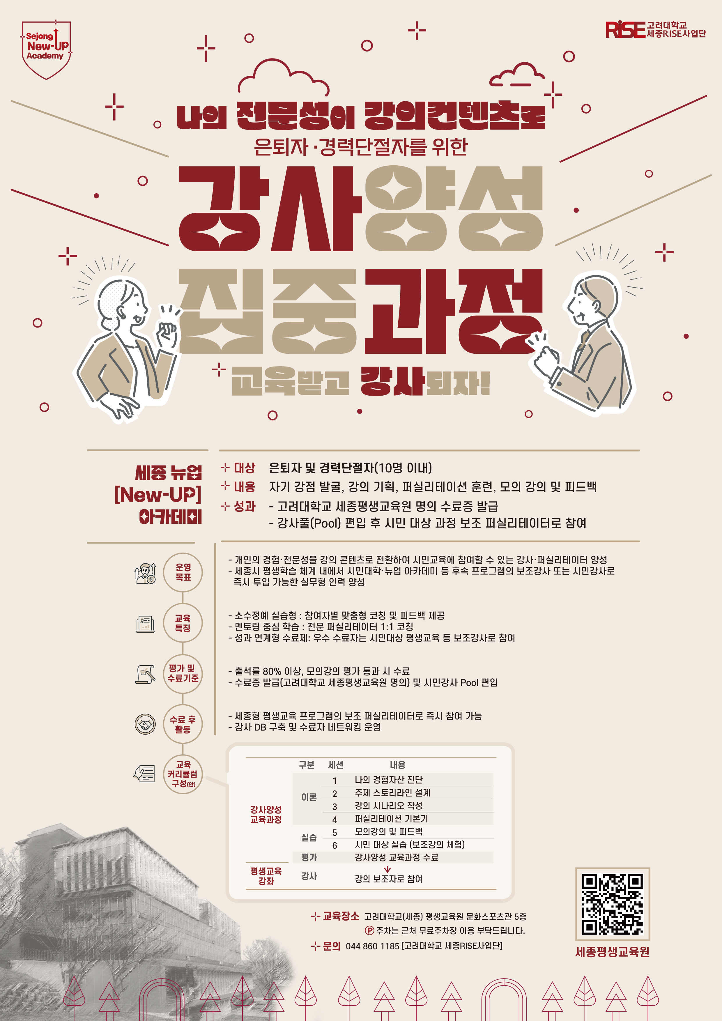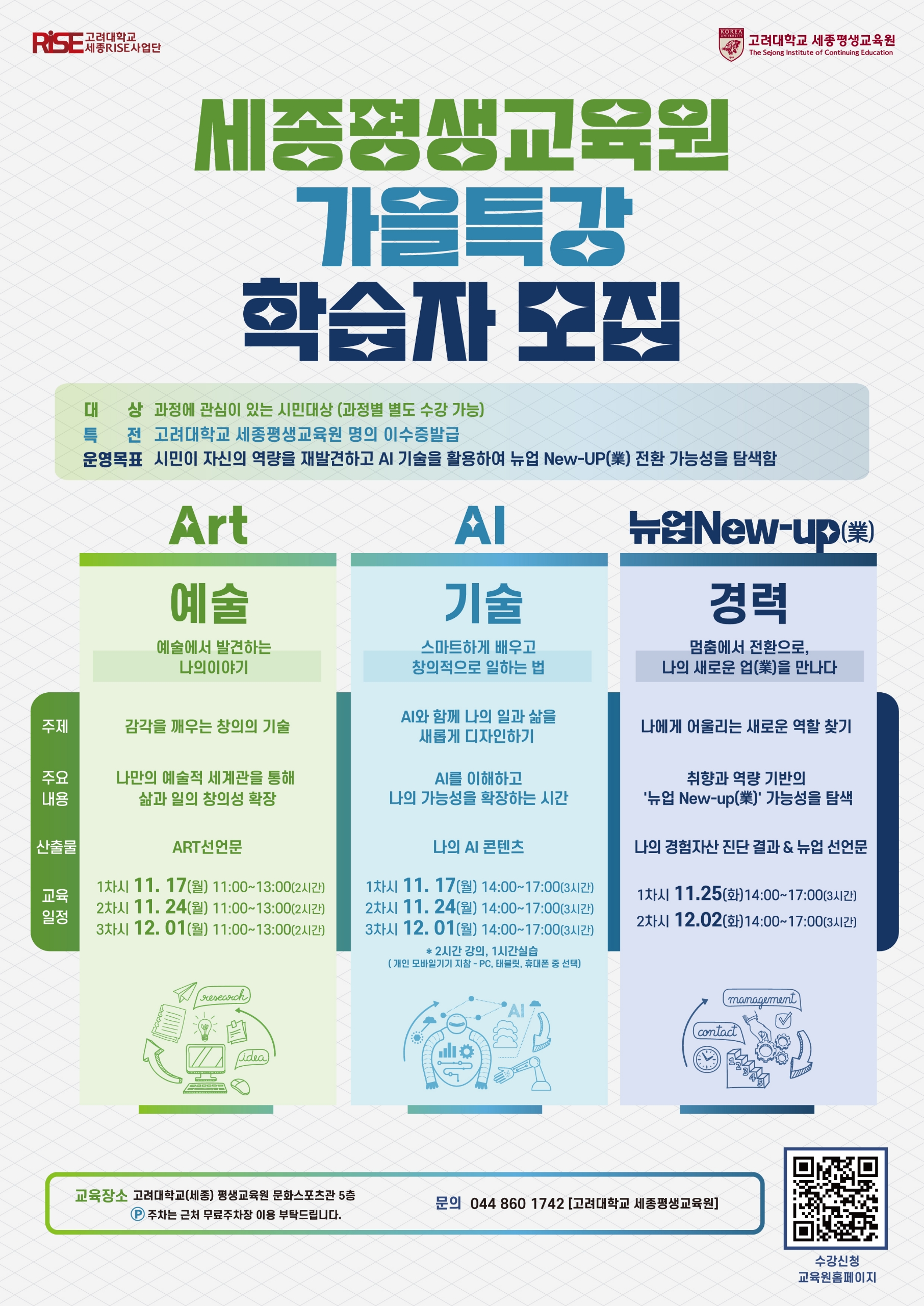 📌[고려대학교 세종평생교육원 x 화담,하다] 『세종 뉴업 아카데미 통합 과정』 운영 (25.11~12)