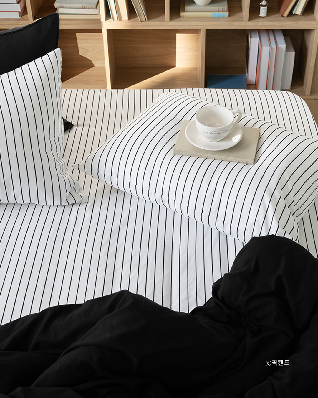 1. 시각적 포인트 화이트 스트라이프, 매트리스 커버 @0413.q