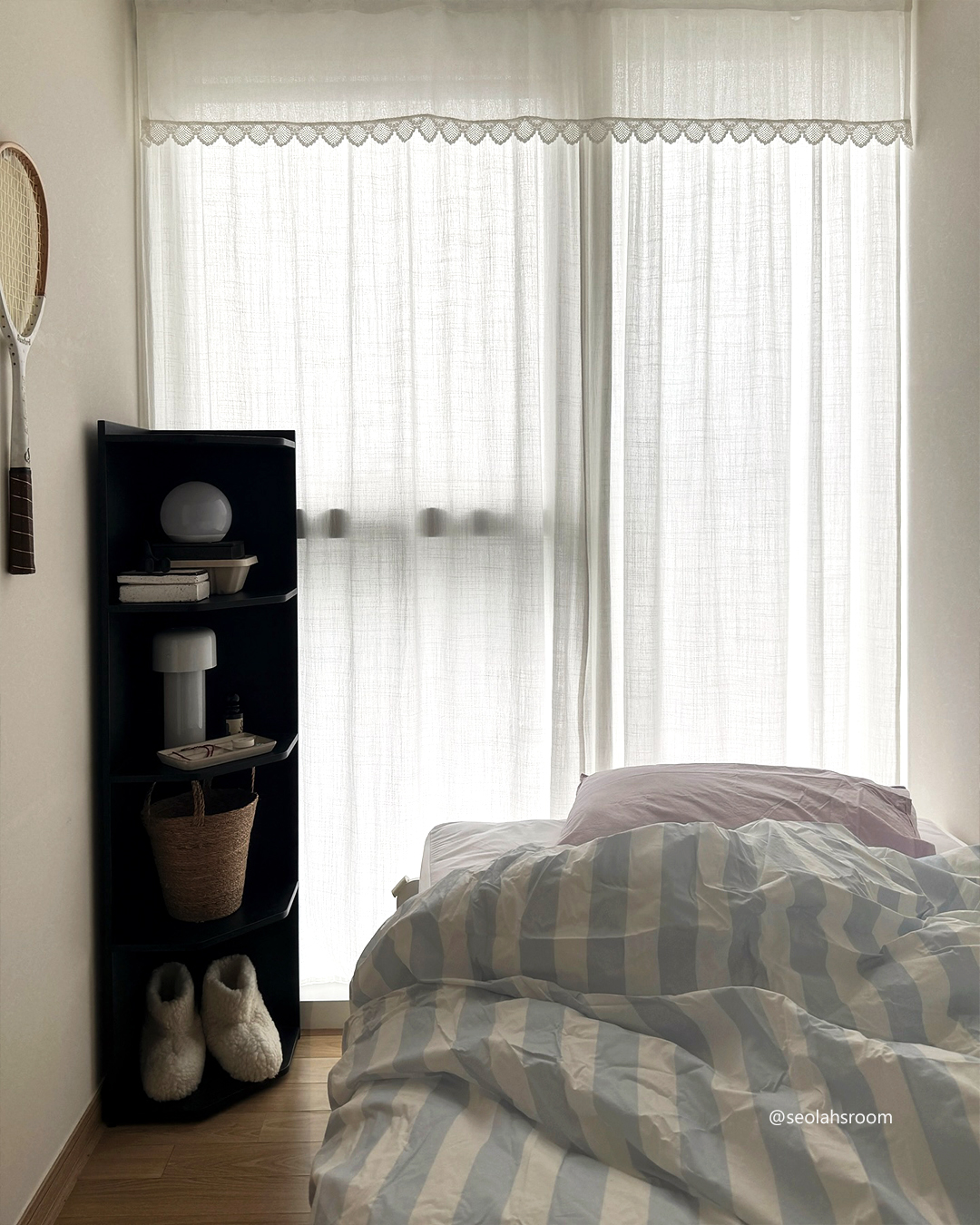 여름 하면 가장 먼저 떠오르는 컬러, 바로 블루 아닐까요?🌊 시원한 블루와 화이트 스트라이프 패턴이 차분하면서도 싱그러운 분위기를 내는 @seolahsroom 1집러의 침실이에요. 고슬고슬한 무광 소재부터 은은한 광택감이 도는 부드러운 소재까지—원하는 촉감에 따라 선택할 수 있다는 점도 매력적이에요.