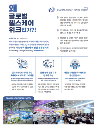 - 헬스케어 판로개척을 위한 국내외 바이어들이 참여하는 B2B 비지니스 기회 제공