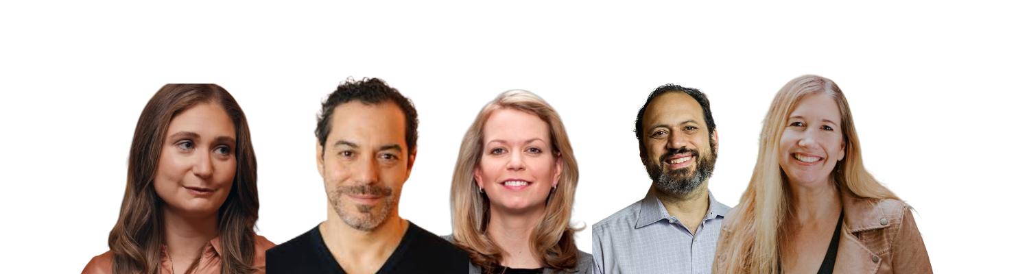 왼쪽부터 순서대로: Daniela Amodei (다니엘라 아모데이), Manny Medina (매니 메디나), Caroline Hanke (캐롤라인 한케), Ethan Mollick (이선 몰릭), Jaime Teevan (제이미 티반)