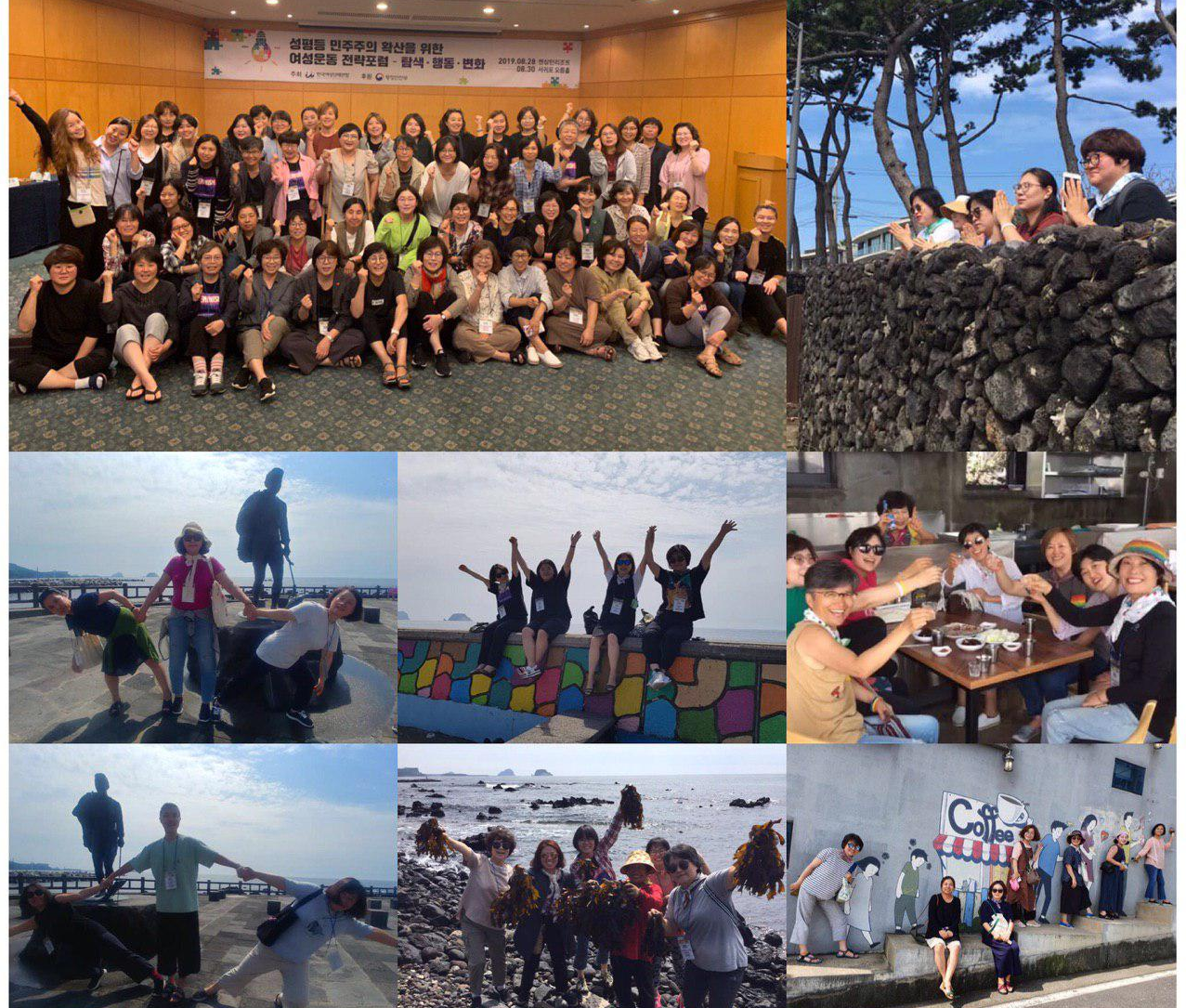 지난 8월 28일부터 30일까지 2박 3일 간 전국의 여성운동가들이 제주도에 모였습니다. 바로 '성평등 민주주의 확산을 위한 여성운동 전략포럼'이 열렸기 때문이죠. 포럼은 #미투 운동 점검과 향후 방향 모색, 2020 총선 전략 논의로 크게 두 주제로 진행되었어요. 여러 발표자들의 발표와 열띤 토론이 이어졌답니다. 마지막 날에는 지역탐방을 하고, 조별 미션도 수행하면서 소통하는 시간을 가졌습니다. 위에 사진들은 조별로 '연대'를 상징한 것인데요. 돌담에서 여성운동의 연대를 기원하기도 하고, 서로의 버팀목이 되어주기도 하고, 무지갯빛 다양성을 강조하기도 하고, 미역처럼 끈질기도 길다란 연대를 드러내기도 하고, 서로 짠 하며 유쾌한 연대를 도모하기도 하고, 나란히 연대를 다짐하기도 합니다. 앞으로 계속해서 만들어갈 우리들의 '연대'가 무척 기대되네요.