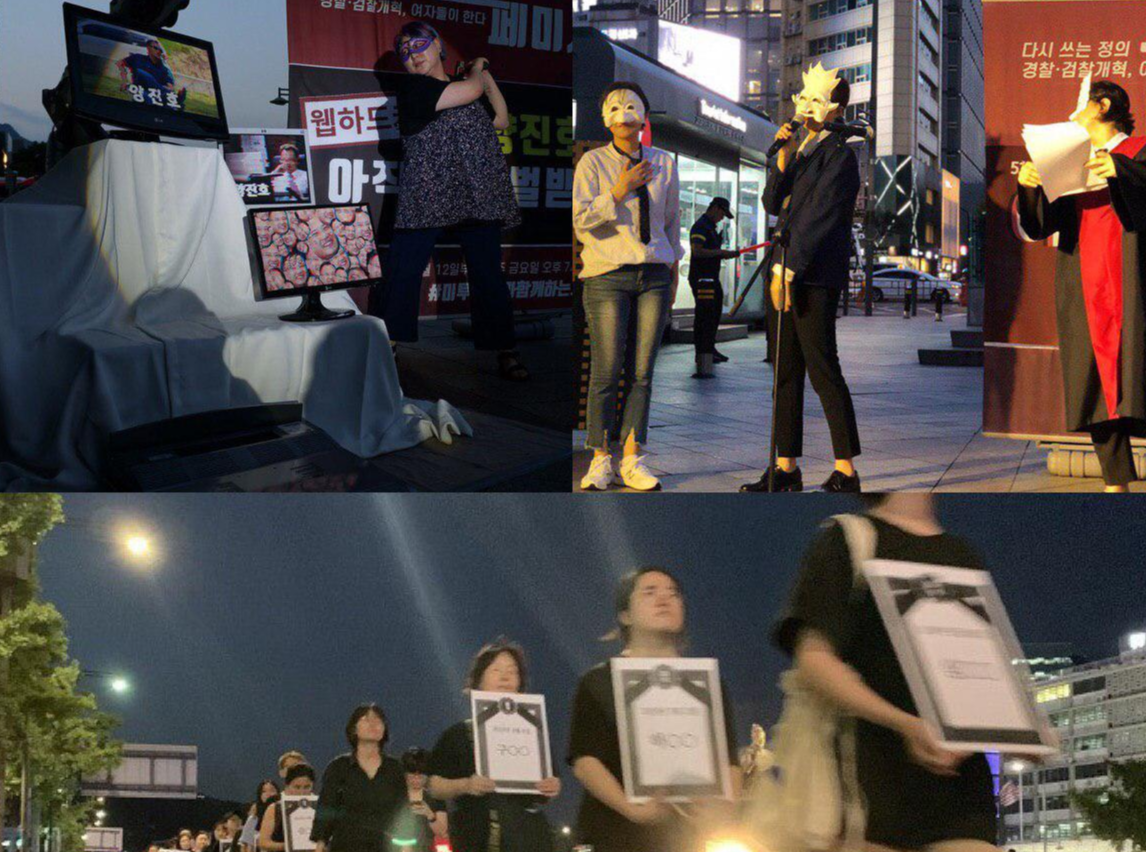 8월과 9월에도에도 광장에서의 외침은 계속 됩니다. <4차 : 웹하드 카르텔, 양진호는 아직도 처벌받지 않았다!>, <5차 : 여성을 위한 검찰은 없다. 검찰 개혁, 우리가 한다>, <6차 : 여성의 죽음을 멈추는 분노의 행진>, <7차 : '국산 야동' 유통 사이트 처벌하라!>가 진행되었습니다. 광장은 추석 한 주 쉬고 다시 이어갑니다. 회차별 후기는 아래 버튼을 참고하세요.