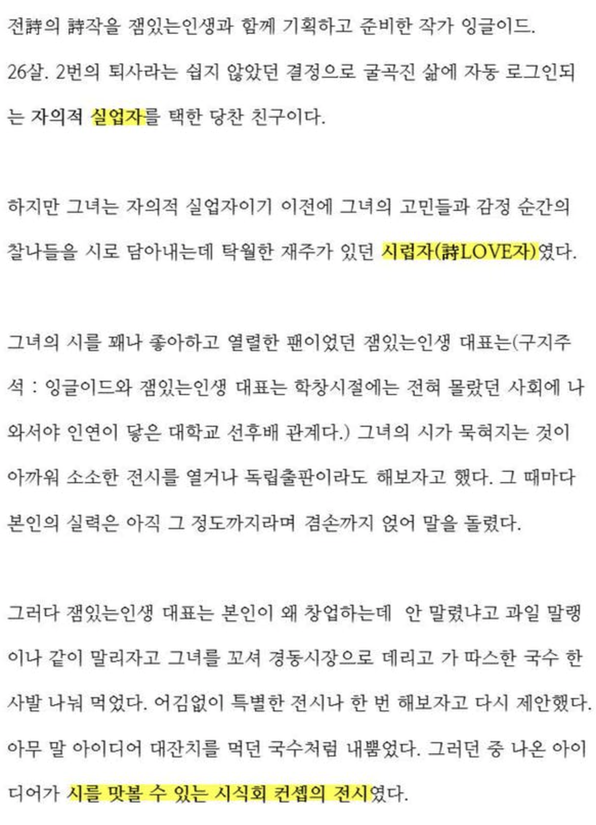 그만 둘 때는 그만두더라도 시스템을 만들어서 부딪혀보고 끝내자고 생각이 들더라고요. 제조장을 운영할 사람을 찾아야겠다고 생각했습니다. 잼있는인생 초창기에 생각해 보면 식품 제조장을 구하기가 어려워서 힘들었는데 분명히 주변에 식품 제조장에 관심 있으신 분들이 있지 않을까 생각했습니다. 만약 제조장을 인수하고 잼을 그대로 만드는 사람이 나타나면 그분께 저희 잼을 납품받는 시스템을 만들어보려고 했습니다. 인턴 중 한 명이 마침 본인의 지인이 관심 있어 한다는 사람이 있다고 했고, 한 번 놀러 오겠다고 했습니다. 카페에 있는데 어떤 분이 활짝 웃으며 걸어 들어오는데 그 분이 바로 배수정님이었습니다. 인연은 또 이렇게 우연히 또 갑자기 시작됩니다. 획기획의 시작을 같이 하고, 지금까지 함께 획기획을 쌓아온 디자이너 분인데요. 다행히도 아직까지 함께 하고 있습니다. 형곤님이 떠나기 전 "걱정 마세요. 제가 나타났던 것처럼 분명히 좋은 사람이 나타날 거에요." 라고 말한 지 3개월 만의 일이었습니다. + 그리고 어제 뉴스레터에서 언급 되었던 형곤님이 마지막으로 남긴 말 중에 "저한테 100년 가는 브랜드 만든다고 했잖아요."라고 이야기 했는데 사실 그 말도 명치 때리고 싶었어요. 형곤님 보고 계시죠? 뉴스레터 클릭한 거 다 보여요. 👊 😊 카페에 앉아 처음 만난 수정님과 이런저런 이야기를 하며 제조장에 대해서 이야기를 하다가 불현듯 "혹시 카페 해보실 생각 없으세요?" 라고 하자 해보고 싶다고 했습니다. 카페 하면서 디자인 작업 하는 게 로망이었다면서요. (로망은 로망일 때가 행복하죠? 수정님?) 수정님과 이야기를 나눠보니 식품 제조는 수정님이 구체적으로 뜻이 있거나 생각해 본 일도 아니었기 때문에 지속적으로 잘할 수 있을 것 같지 않았습니다. (수정님을 의심한 것이 아니라 식품 제조가 정말 큰 뜻이 없으면 하기 힘든 일입니다.) 그렇다면 카페 물건도 그대로 드리고 시설비나 인수비용 하나도 안 받을테니까 월세만 따로 내시고 운영해보시라고 했습니다. 이름도 바꿔도 되고 인테리어도 바꿔도 되고 마음대로 하시라고요. 대신에 카페 한 켠에 제가 앉을 자리만 주시면 제가 제 자리 비용 월세 내겠다고요. 당시 카페 자리 월세가 40만원이었는데 제가 제 자릿세로 15만원 정도 드렸으니, 월 25만원에 카페를 운영하게 되었습니다. 그녀는 곧잘 카페 운영을 잘 했습니다. 일단 사진에서 보시는 것처럼 웃는 상이었고, 저와 달리 빠릿빠릿하셔서 서비스업에 제격이었습니다. 제가 운영할 때보다 단골손님도 많이 늘었습니다. 그리고 종종 디자인 업무도 의뢰 드렸는데 디자인을 되게 잘 하시더라고요. 그래서 2016년 말에 잼있는인생과 더불어 기획 에이전시 획기획이라는 기획회사 아이디어를 낸 적이 있는데 기회가 되면 같이 하자고 말을 해두었습니다. 실제로 수정님을 만나기도 훨씬 전, 2016년에 쓴 획기획 브랜드 탄생기 읽으러 가기 생각나면 다 써두어야 합니다. 인생 정말 어떻게 될지 몰라요. 그리고는 사이드 프로젝트를 열심히 해 보았습니다. 카페도 수정님이 운영하게 되었고, 잼있는인생은 간혹 가끔씩 주문이 들어오고 저도 좀 생각할 시간이 필요했습니다. 사실 이 뉴스레터에 담기지 않은 사사롭고 사사건건한 일들이 아주 많습니다. 다 담지 못해서 아쉬울 정도로요. 그럼에도 불구하고 이렇게 과거와 마주하고 생각하면서 굵직굵직한 알맹이들을 고르고, 과거에서 건져내는 느낌이라 정리도 되고 좋은 것 같아요. 저는 아이디어가 정말 많은 편이고 생각 나는 편인데 이번 생에 다 해보지 못하고 죽는 것이 이번 생 업보라고 생각될 정도입니다. 그래서 지금은 사이드 프로젝트라고 멋지게 불리고 있는데 당시에는 사람들이 '참 돈 안 되고 쓸데없는 짓' 잘한다고 명명했던 '쓸데없는 짓'을 해보기로 합니다. 아래의 모든 프로젝트들이 2017년 그리고 2018년 초에 모두 일어났던 일들입니다. 소소하고 짜치는 일들까지 합하면 더 많습니다. 저도 제가 왜 이러는지 잘 모르겠습니다. # 알쓰신잔 저는 알쓰(알콜 쓰레기)입니다. 알쓰를 위한 재미있는 음주 잔을 만들어보고 싶었습니다. 알쓰들도 아주 술을 입에 대지 않는 것은 아닙니다. 맛있는 술을 먹어보고 싶거나 술을 음미해보고 싶은데 마셔본 경험이 없으니 어떤 종류의 술을 어느 정도 마셔야 취하지 않고 맛있게 맛 볼 수 있는지 가이드와 알쓰전용술잔을 만들어보고 싶었습니다. 펀딩까지는 가지 못하고, 기획과 디자인에서 끝나긴 했지만요. 재밌는 작업이었습니다. #노돈조합 잼있는인생 4년 동안 하면서 느낀 것이 왜 나는 노동을 하는 만큼 돈을 벌지 못하는가에 대한 생각이었습니다. 신기하게도 잼있는인생을 하다 보니 주변에 비슷한 브랜드들을 만날 수 있었고 마침 반테이블 두 대표님과 겪어온 경험이 비슷하더라고요. 신기하고 재밌었습니다. 왜 우리는 노동을 하지만 노돈인가에 대해서 이야기를 담아보는 노돈조합이라는 팟캐스트도 진행해보았습니다. #시식회 한 번도 본 적 없는 학교 후배가 찾아온 적 있었습니다. 다른 회사에 다니고 있었고 다니는 회사의 서비스를 소개해 주었죠. 