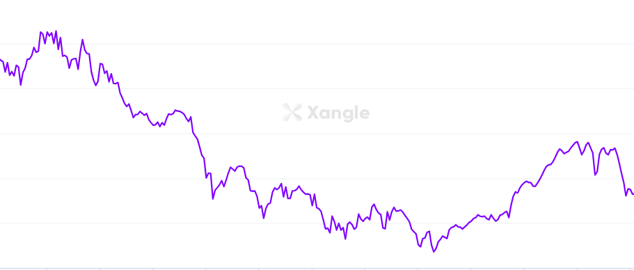 디파이 DeFi 전날 대비 4.38% 하락 지난 주 대비 5.04% 하락 |