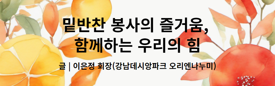 4μλΆν° βμΆκ° μμμ νλ‘κ·Έλ¨βμ΄ μμλμμ΅λλ€. μ΄ νλ‘κ·Έλ¨μ λ§€μ λ§μ§λ§ κΈμμΌλ§λ€ μ‘°μ€μ μ¬ν볡μ§μ¬λκ³Ό ν¨κ» μ₯μ λ³΄κ³ , λͺ¨μ¬μ μ§μ μΆκ° μμμμ 쑰리ν ν, κ° κ°μ μ λ°°λ¬νλ λ°©μμΌλ‘ μ§νλμμ΅λλ€. μ€λ¦¬μλΏλ§ μλλΌ κ°λ¨μ νλͺ©μκ΅ν, μμκ΅νμμ νλ ₯μ ν΅ν΄ λμ± νμ±νκ³ λ€μν λ°μ°¬μ μ€λΉν μ μμμ΅λλ€.