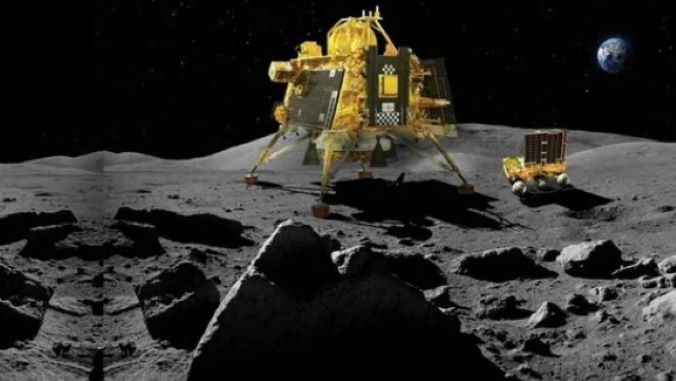 인도의 달 탐사선 찬드라얀 3호가 달의 남극에 착륙해 있는 상상도 <사진=인도우주연구기구>