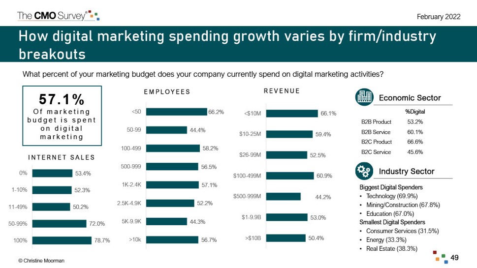 추가로 CMO Survey에서는 4개의 산업군별로 분류한 데이터도 소개하는데요.