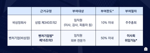 *벤처기업육성에 관한 특별조치법 / *부여 한도: 발행된 주식의 총수 기준
