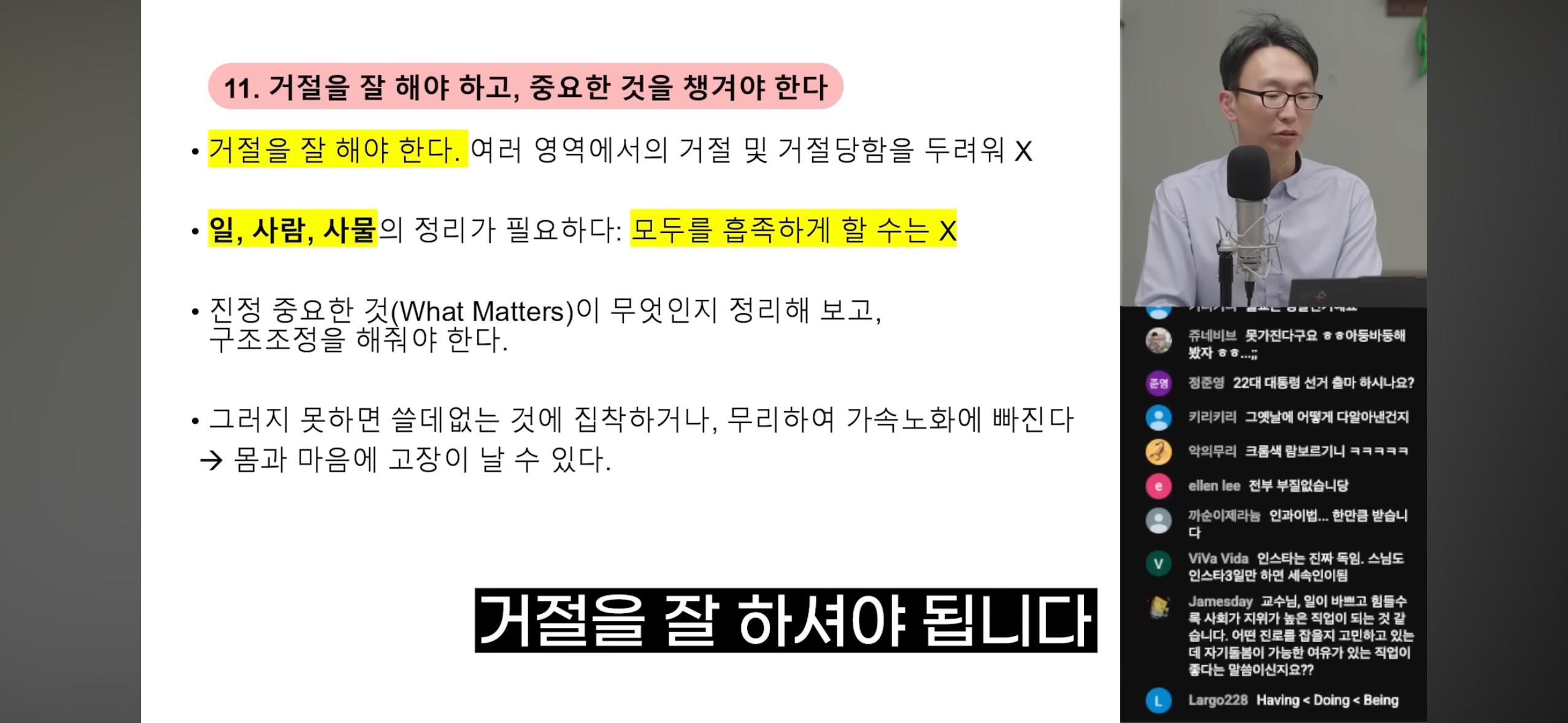 내 일을 현재 열심히 하고 있는 분도, 잠시 휴지기를 가지면서 다음을 모색하고 있는 분도, 마지막 2개 꼭지는 꼭 보시면 좋겠습니다. 전체 영상은 약 30분이며, 마지막 2개 꼭지만 보시면 10분입니다.
