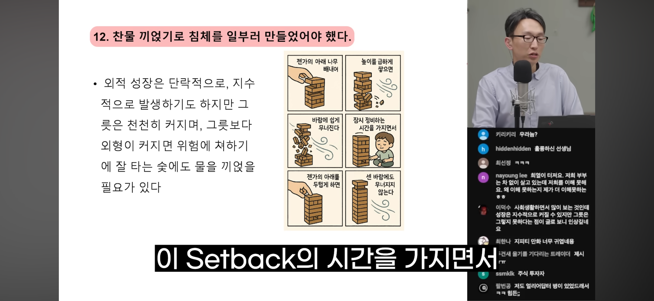 - 찬물 끼얹기로 침체를 일부러 만들었어야 했다