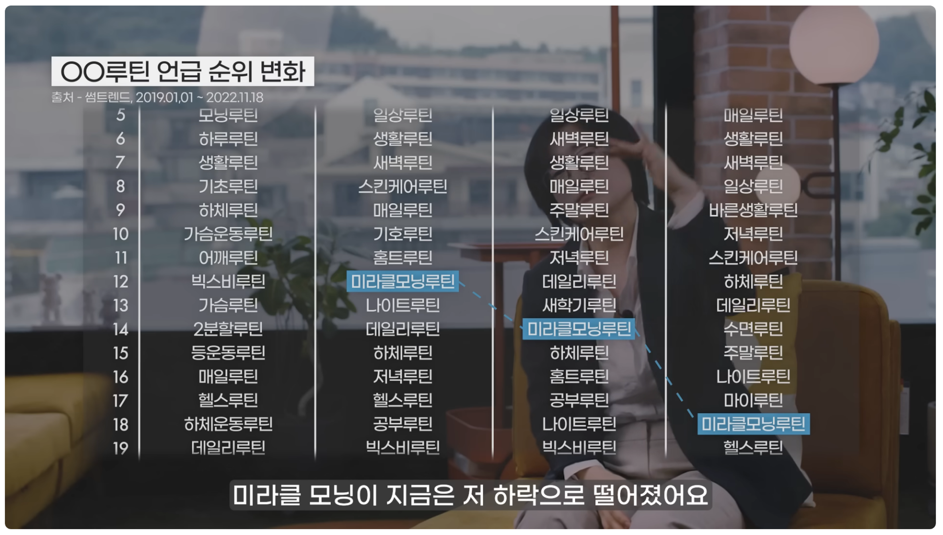 ๋ฐ์ดํฐ๋ฅผ ํตํด ํธ๋ ๋๋ฅผ ์ด์ผ๊ธฐํ๋ ์ํ๋ณํ๊ด์ธก์์ ๋ฐ๋ฅด๋ฉด '์ฌ๋ก์ฐ ๋ฌ๋'์ฒ๋ผ ์ฒ์ฒํ, ์ค๋ ์ง์ ๊ฐ๋ฅํ ํธ๋ ๋๊ฐ ๋ถ์ํ๊ณ ์์ผ๋ฉฐ, ์ค์ ๋ก '๋ฏธ๋ผํด ๋ชจ๋' ๊ฐ์ ํค์๋๋ ์ ์ ๊ฐ์ํ๊ณ ์๋ค๊ณ ํ๋ค.