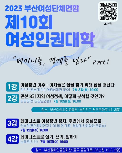 2023 부산여성단체연합 제10회 여성인권대학 "페미니즘, 경계를 넘다" part.1이 열립니다.