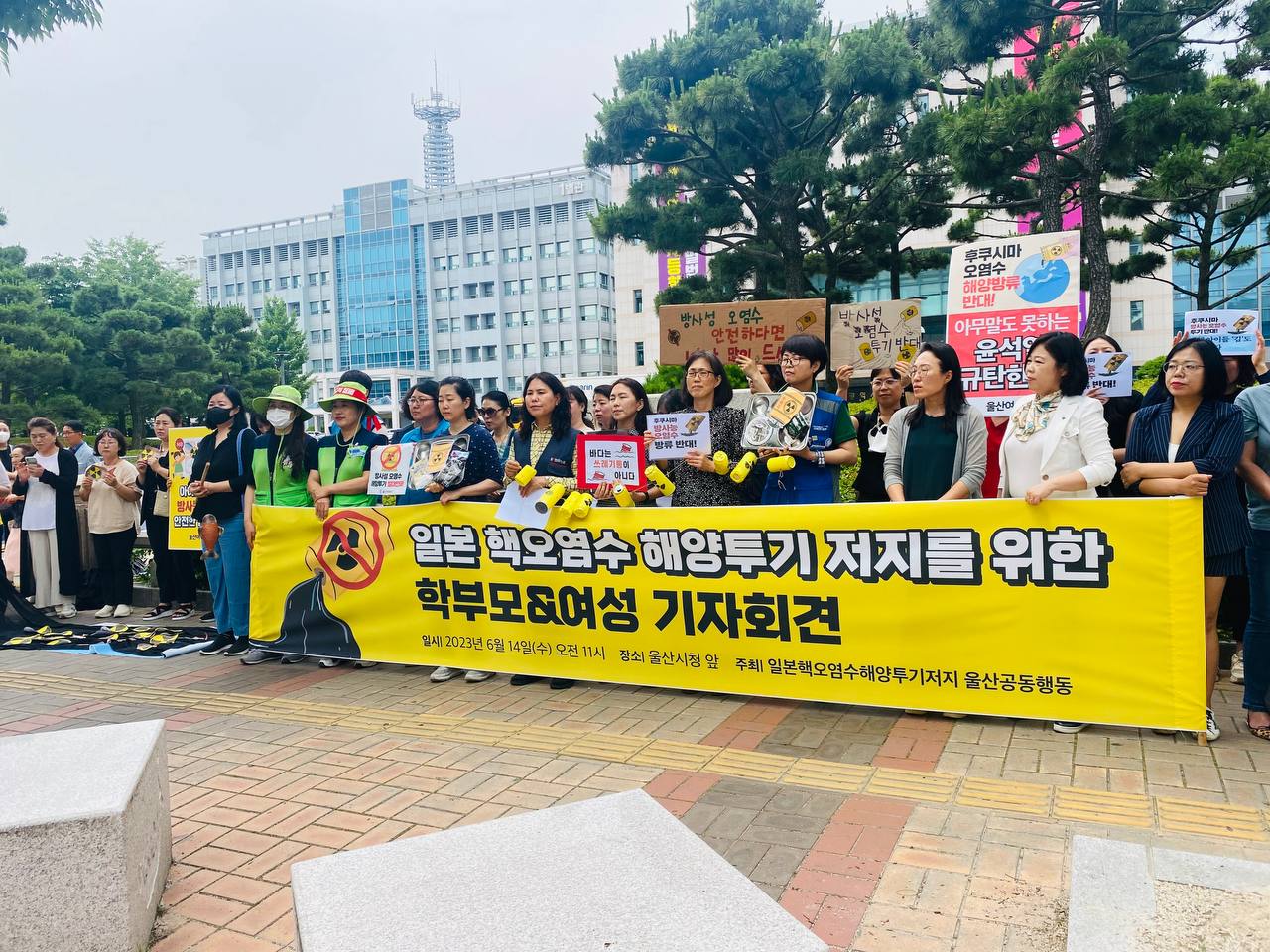 6월 14일(수) 오전 11시 울산시청 앞에서 50여명의 학부모와 여성들이 일본 핵오염수 해양 투기를 반대하는 기자회견을 진행했습니다. 핵오염수 해양투기로 인해 학부모, 급식 노동자, 먹거리운동 활동가 등 각자의 자리에서 걱정되고 분노하는 마음들을 이야기하면서 기자회견에 참가한 모두의 마음을 대변해 주었습니다.