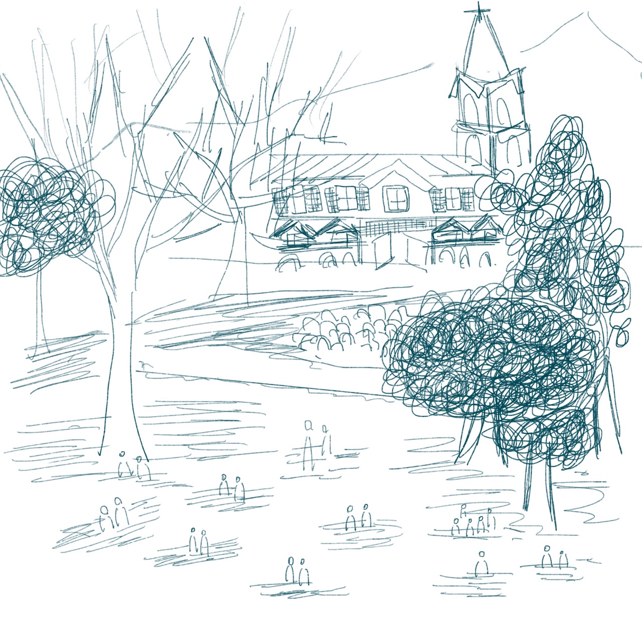 음악을 들으며, 눈앞에 보이는 모습을 아이패드에 그림으로 그려봤다. 그림도 잘 그리지 못하는 내가 아무 생각 없이, 시간의 제약 없이, 잘 그려야 한다는 생각 없이, 단지 지금 이 순간을 기억하고 싶다는 마음으로 슥슥 그리는 과정이 참 평안했다. 주변의 사람들도 모두 평안해 보였고, 사람들은 서로에게 방해가 되지 않을 만큼의 거리를 유지하며 공원에서 각자의 방식대로 머물고 있었다. 찰나였지만 잠깐이나마 평범한 독일 소도시에서의 주말 오후를 경험할 수 있어 행복했다. |