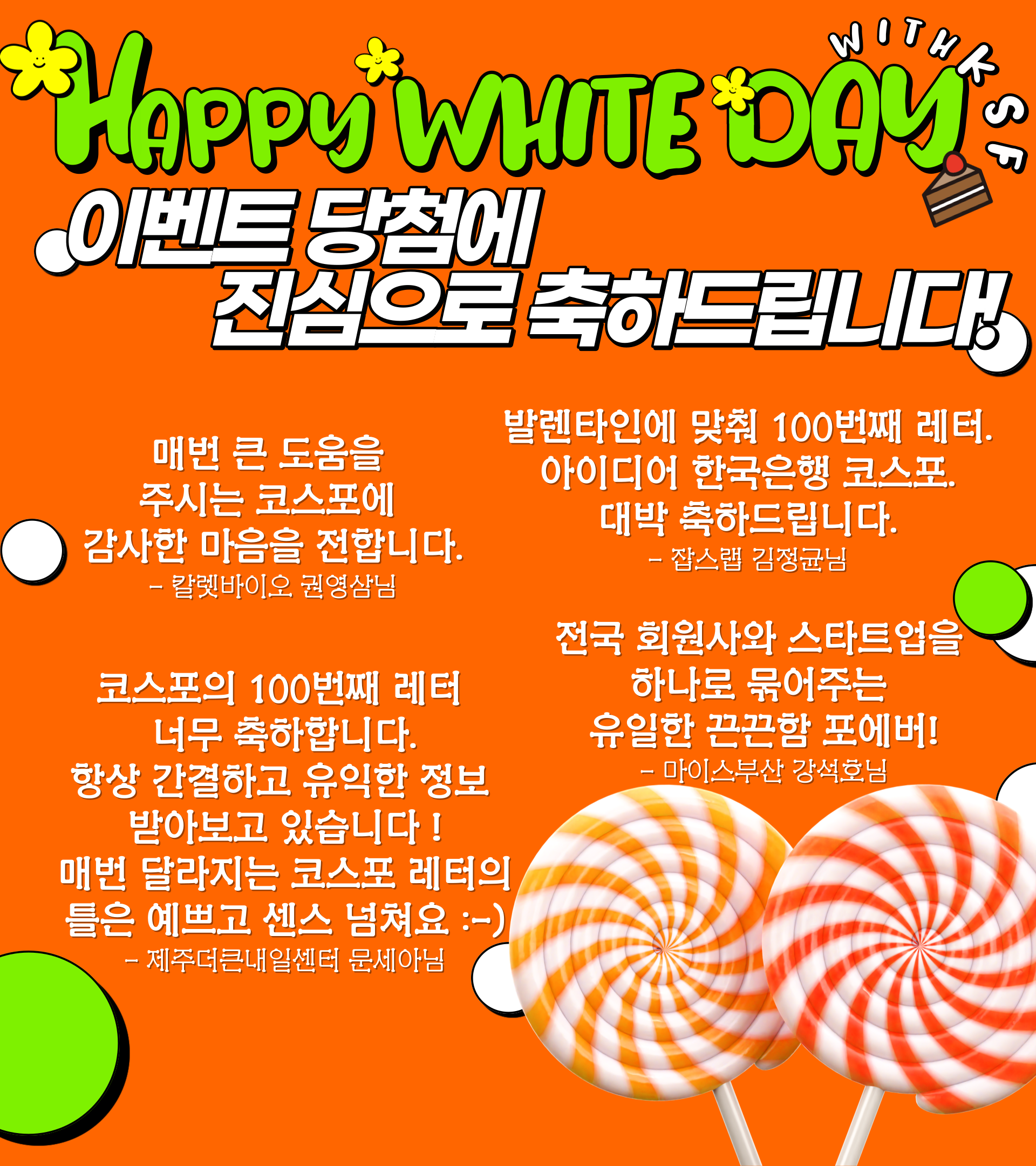 # '코스포레터에게 보내는 축하 메세지🧡' 당첨자 공개