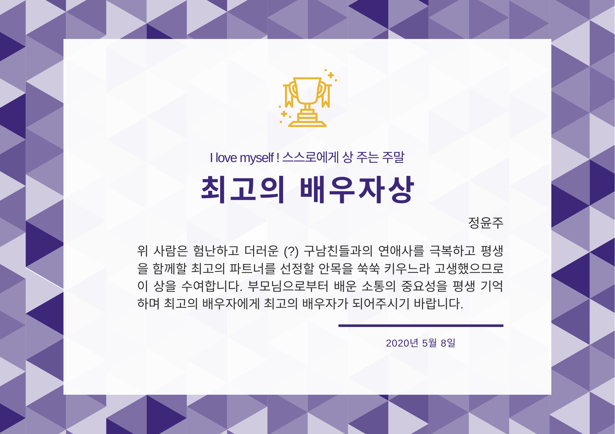 ธ๋ ฅํ๋, ๋ด ์ต๊ณ ์ ๋ฐฐ์ฐ์์๊ฒ "์ต๊ณ ์ ๋ฐฐ์ฐ์๋ฅผ ๋ ๋ฐฐ์ฐ์์"์ ์๊ด์ ๋๋ฆฌ๊ณ ์ถ์ต๋๋ค. ์ด๋ฒคํธ ๋น์ฒจ์ 2. ๋์ ๋ <์ฌํด์ ์