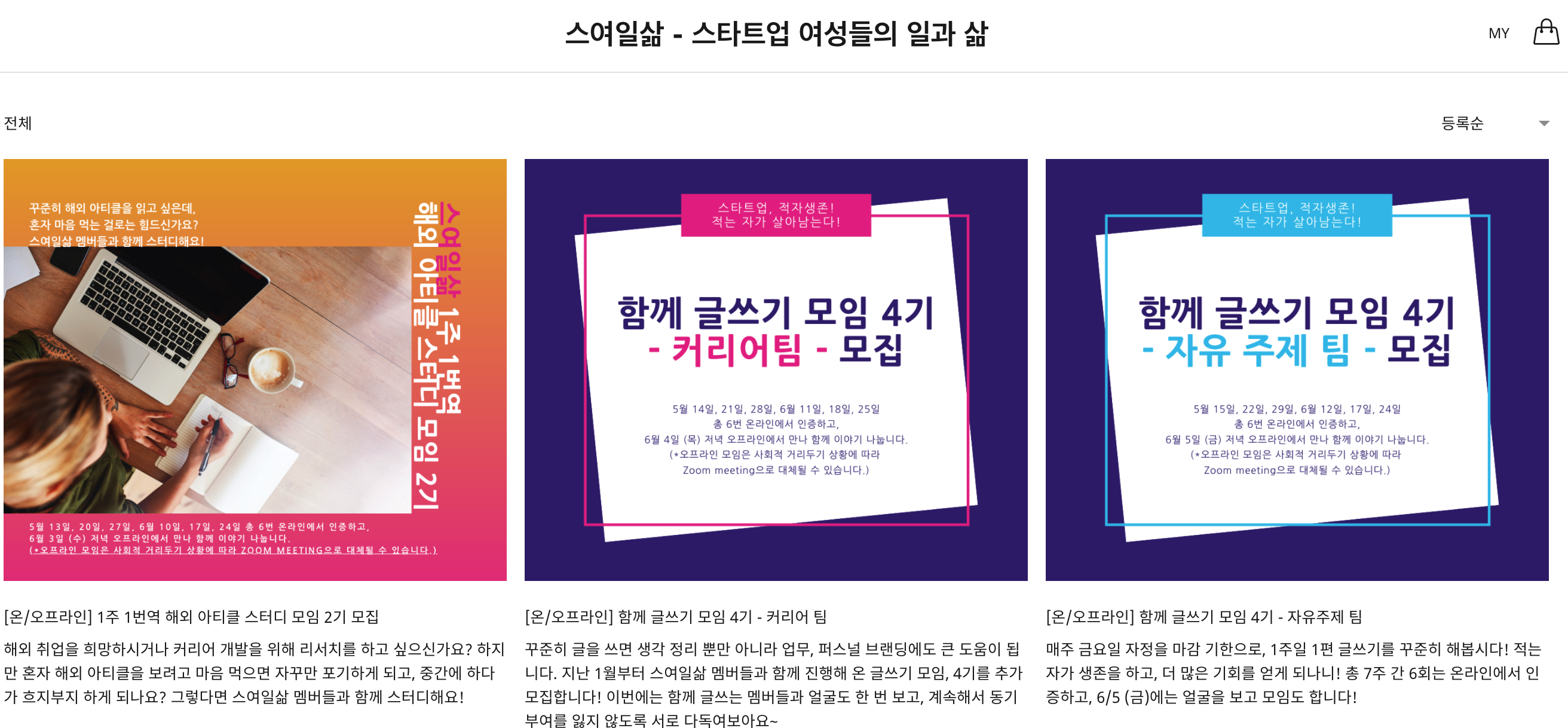 ํผ์์๋ ๊พธ์คํ ํ๊ธฐ ํ๋ ์ผ๋ค์ด ์๋ค๋ฉด ์ค์ฌ์ผ์ถ ๋ฉค๋ฒ๋ค๊ณผ ํจ๊ป ํด๋ด์. ํ์ฌ 1์ฃผ 1๊ธ์ฐ๊ธฐ ๋ชจ์ 2ํ - ์ปค๋ฆฌ์ด / ์์ ์ฃผ์ - 4๊ธฐ์ 1์ฃผ 1๋ฒ์ญ ์ํฐํด ์คํฐ๋ ๋ชจ์ 2๊ธฐ๋ฅผ ๋ชจ์ง ์ค์ ์์ต๋๋ค. ๊ธ์ฐ๊ธฐ ๋ชจ์์ ๋ง ๊ทธ๋๋ก ์ผ์ฃผ์ผ์ ๊ธ 1ํธ๋ง์ด๋ผ๋ ์์ฑํด์ ์