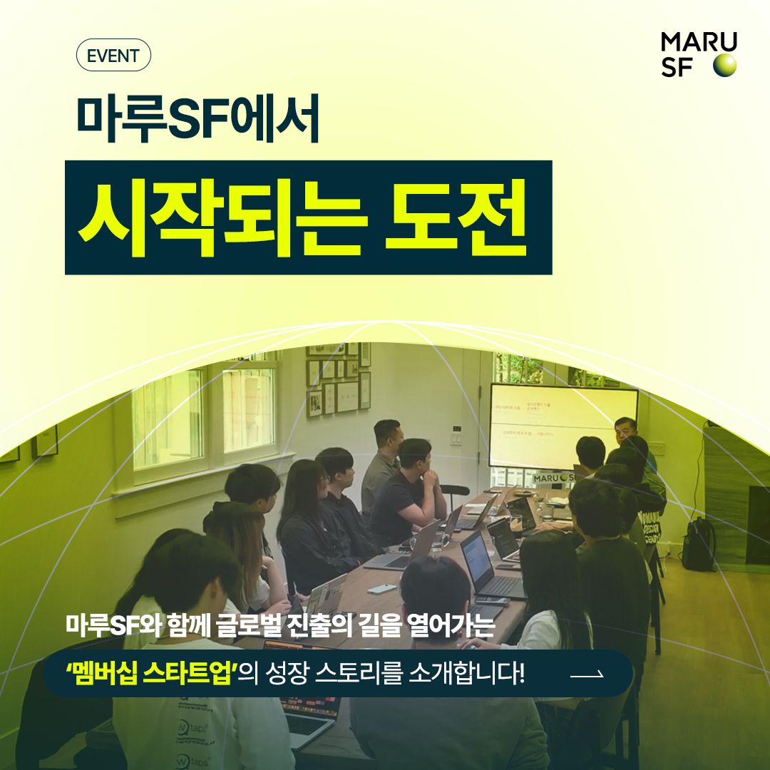 마루SF는 스타트업의 미국 진출 지원을 위해 마련된 아산나눔재단의 실리콘밸리 거점입니다. 마루SF에 머무는 멤버십 스타트업들은 이곳에서 다양한 성과와 협력 사례를 만들며 글로벌 진출에 도전하고 있는데요! 마루SF 이웃으로 우연히 만난 두 스타트업이 MOU를 체결하고 미국 현지에서 50만 달러 규모의 엔터프라이즈 계약을 논의하는 등의 가시적인 성과를 만들어가고 있습니다. 또 MARU의 기반인 ‘페이잇포워드’ 문화를 통해 서로의 도전과 성장을 함께 만들어 가고 있습니다. 실리콘밸리에서 글로벌 스타트업로 도약해나가는 이들의 성장 스토리를 지금 바로 만나보세요! 따듯한 응원 댓글을 남겨주시면 추첨을 통해 소정의 선물도 드립니다.💚 더보기 |