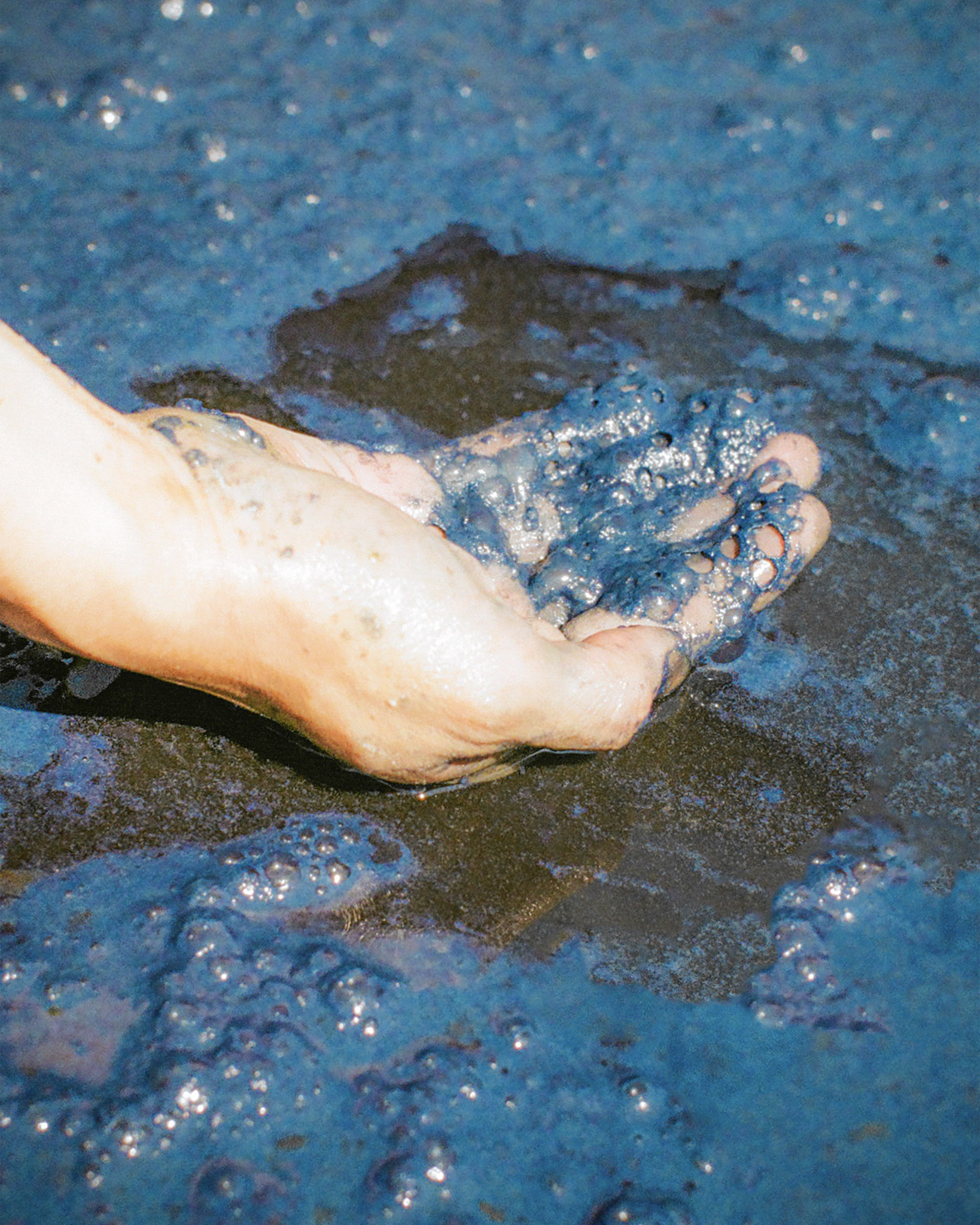국내뿐 아니라 일본의 도쿠시마, 미국의 브루클린까지 색을 찾아나선 여정이 이어졌다. 그중에서도 그의 뇌리에 남은 장면은 작가들의 블루 핸즈(Blue Hands)였다. 파랗게 물든 손톱과 손을 가지고 있는 것도 인상적이었지만, 더욱 기억에 남은 이유는 따로 있었다. “그들은 자신의 손에 대해 아주 큰 자부심이 있더군요. 펍에서 맥주를 마실 때 블루핸즈를 자랑스럽게 내보이는데, 그런 자신감이 부러웠고, 저 역시 그런 손을 갖고 싶다는 생각이 강하게 들었어요.” 오랜 시간 조금씩 물든 작가들의 손처럼, 쪽염색은 색을 탐색하듯 지난한 과정과 시간을 보내야 좋은 색을 낳는다. 그 수고스러움을 감수하는 것, 그 점이 전통 염색의 본질이라 하는 그의 손도 역시 파란빛이 감돌고 있다. |