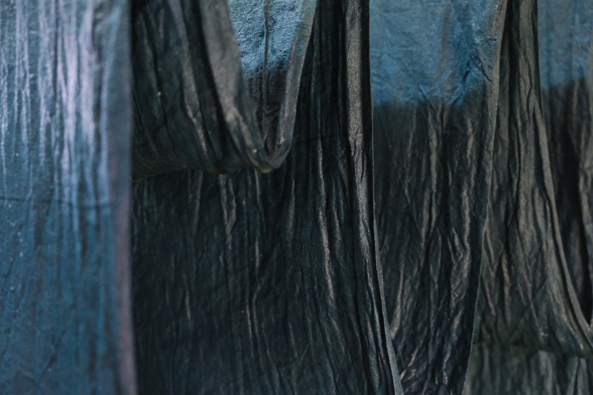 김지민 작가는 “도자에서도 연한 옥빛의 청자가 잡티나 오염도가 더 잘 보이듯이 더욱 연한 쪽 염색을 하는 것은 기술의 측면에서 더 높은 스킬을 요한다.”고 한다. 그뿐만 아니라 발효가 되지 않은 염료이기 때문에 색이 더 잘 휘발되기도 하는데, 그는 이런 연한 색도 균등하게 낼 수 있는 방법을 연구하는 데 노력을 기울이고 있다.