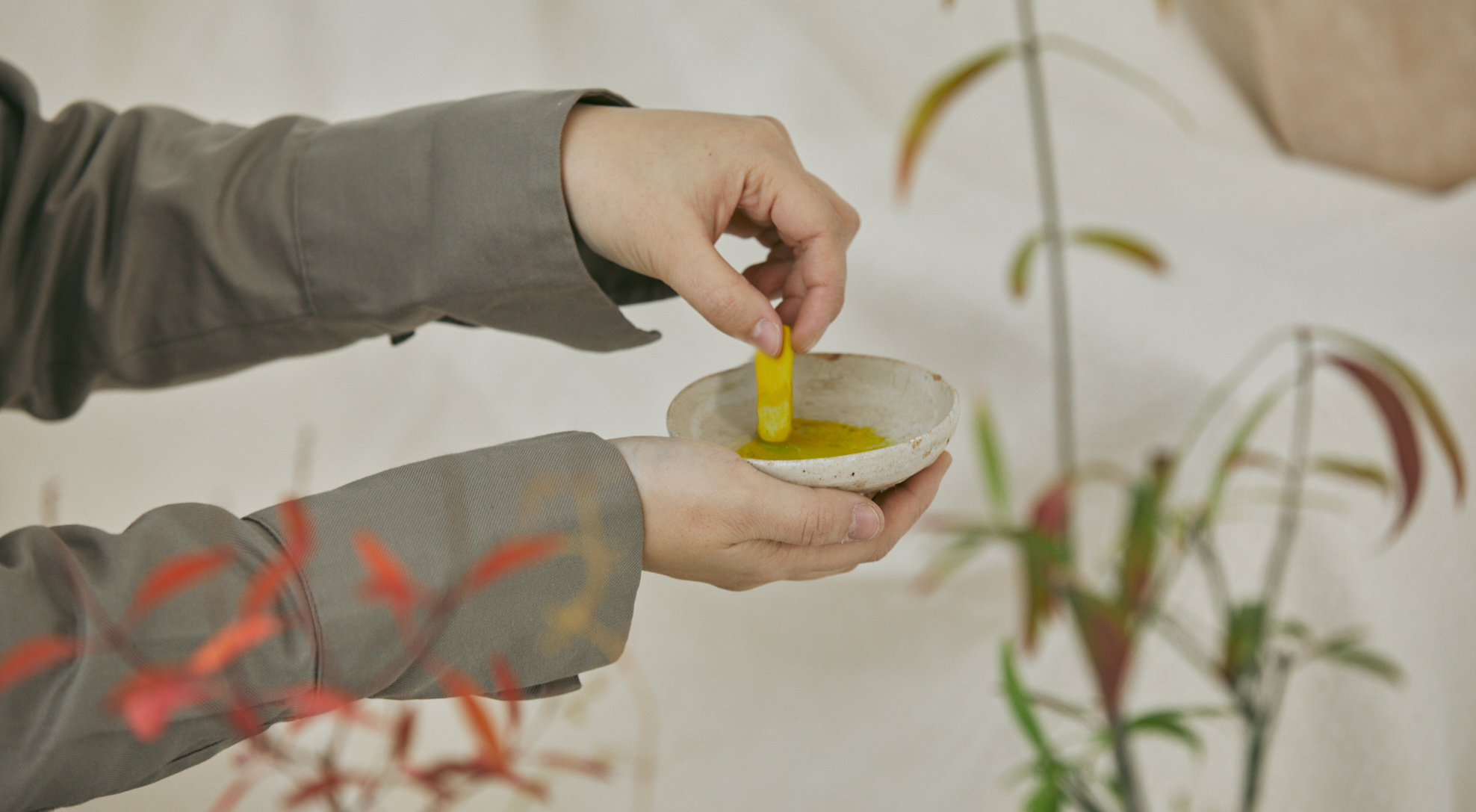 광물성 안료는 깊은 무게감이 느껴지며, 식물성 안료는 맑고 투명한 느낌을 전달합니다. 특히 식물은 주변에서 구하기가 쉬웠고, 재배가 가능하여 안정적인 확보를 통해 다채로운 색상의 추출이 되었습니다.