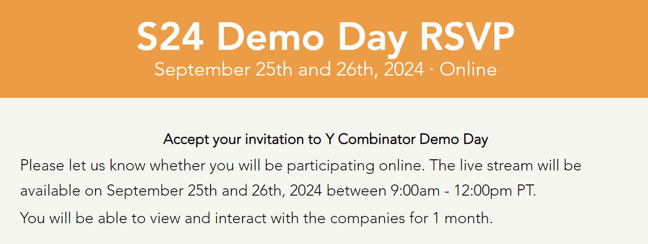 오는 수요일과 목요일, 양 일간 실리콘밸리 대표 액셀러레이터인 와이콤비네이터의 2024년 여름 배치 (S24) 데모데이가 열립니다. 이번 배치 또한 지난번과 규모가 비슷한 약 250개 기업이 7월부터 3개월간 프로그램에 참여하였습니다. 그리고 이번 주부터는 프로그램의 대미를 장식하는 데모데이를 통해 대부분의 참여 기업들이 '데모데이 라운드'로 불리는 시드 펀딩에 본격 돌입할 예정입니다.