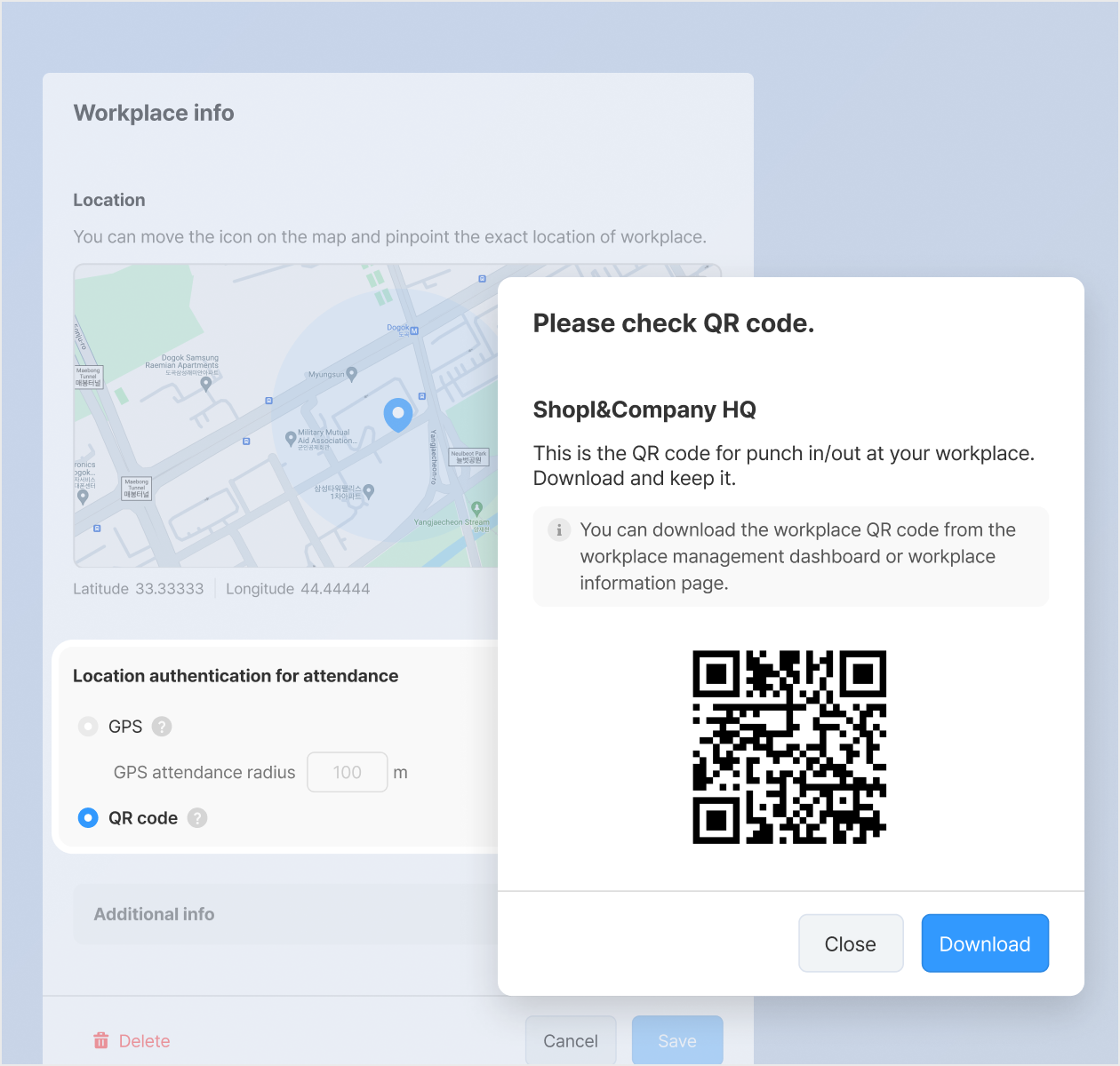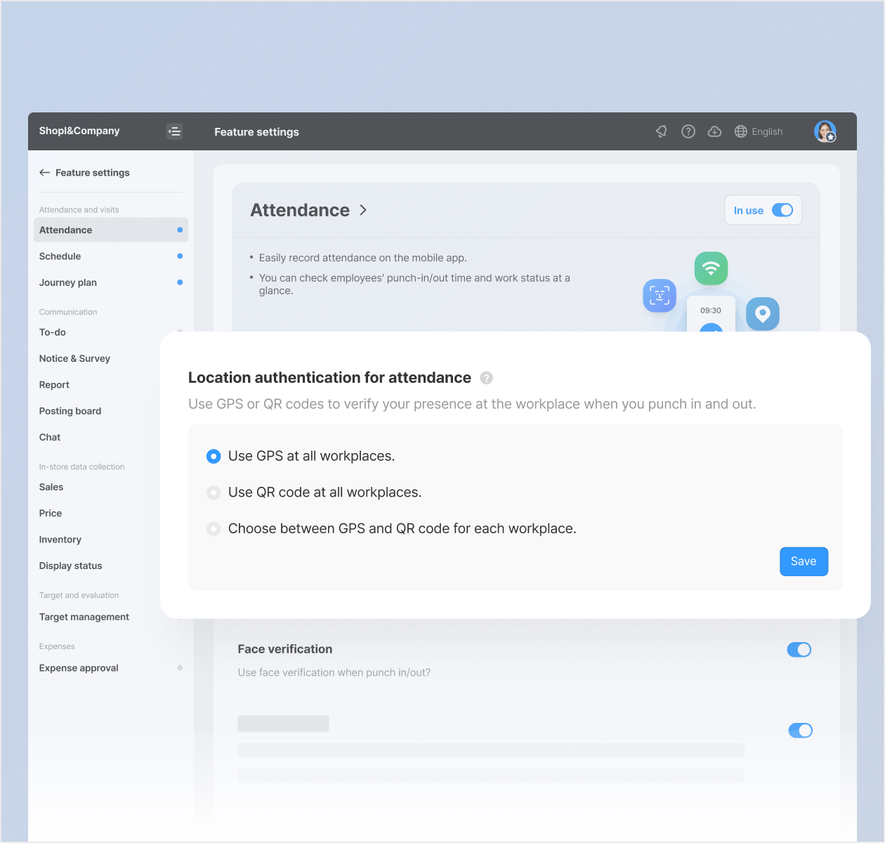 * How to set up: Dashboard > Feature settings > Attendance > Location authentication for attendance