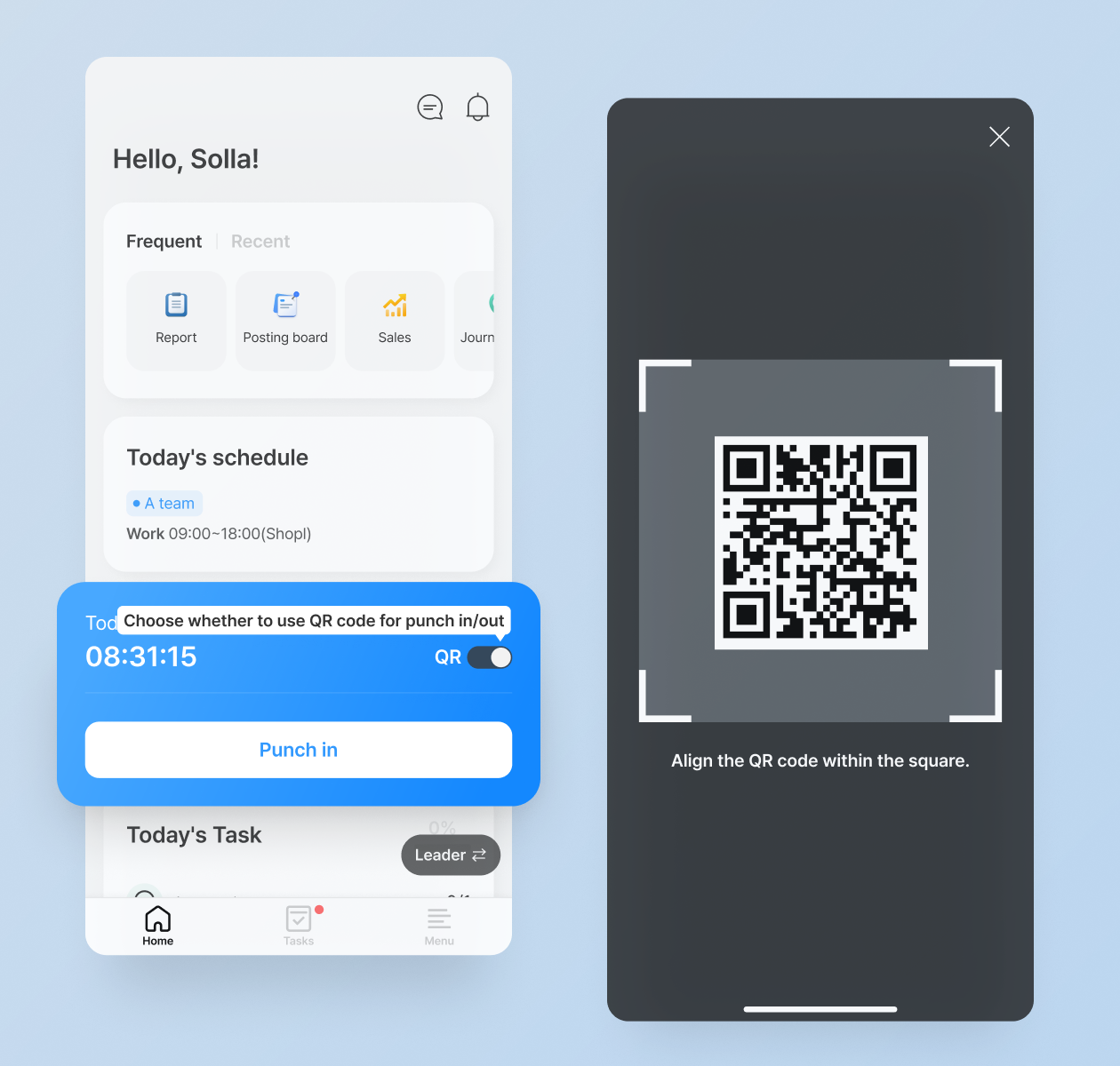 Now you can choose the location authentication method that best fits your company, whether it's GPS or QR. Even when using QR codes, we simultaneously verify the employee's location with GPS, eliminating concerns about fraudulent use.