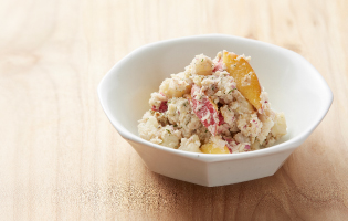 삶은 감자와 다진 양파를 으깨 샐러드에 한입 크기로 썬 복숭아를 넣으면 샐러드가 더 상큼해요. 딱딱한 복숭아를 좋아한다면 껍질째 썰어서 넣는 것을 추천해요. |