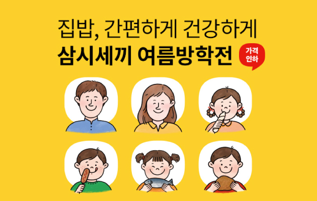 아이들이 방학이라는 큰 선물🎁을 받았어요. 즐거워하는 아이들을 보면 한편으로 부럽기도 해요.🤣 방학동안 어떤 반찬과 간식을 준비해야 하나 고민되지는 않으세요? 온 가족 모두 즐거운 방학이 되길 바라면서 삼시세끼 여름방학전을 마련했어요. 여름방학 밥상을 건강하고 알뜰하게 준비해보세요.🎉 |