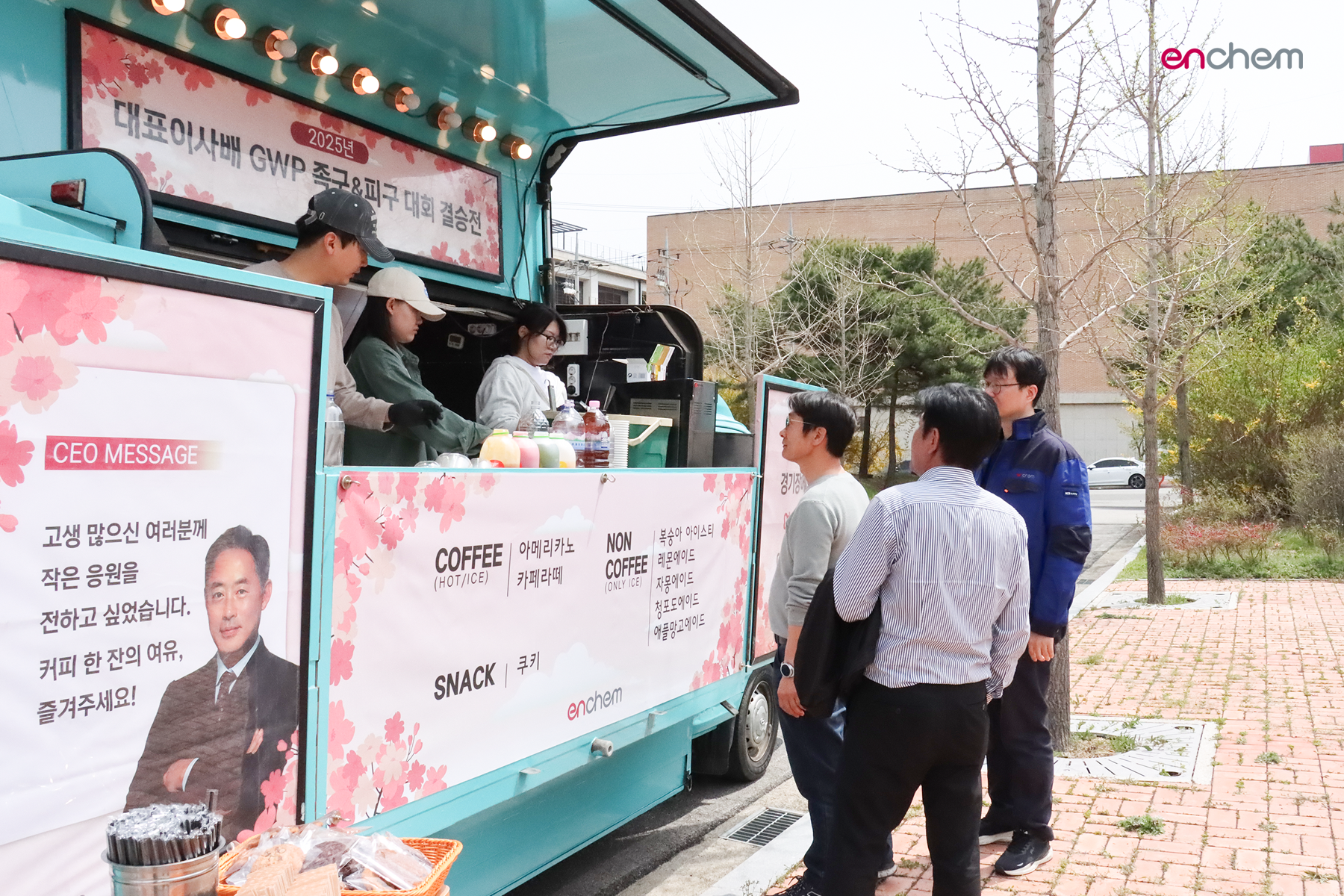 결승전의 열기를 더욱 뜨겁게 달궈준 특별한 선물이 있었어요. 바로 대표이사님께서 준비해주신 사랑이 가득 담긴 커피차였어요. 맛있는 커피와 다양한 음료, 달콤한 쿠키까지 준비해주신 덕분에 멋진 경기를 관람하며 모두가 더욱 즐거운 시간을 보낼 수 있었어요. 직원들을 향한 대표이사님의 따뜻한 마음이 느껴지는 순간이었어요.