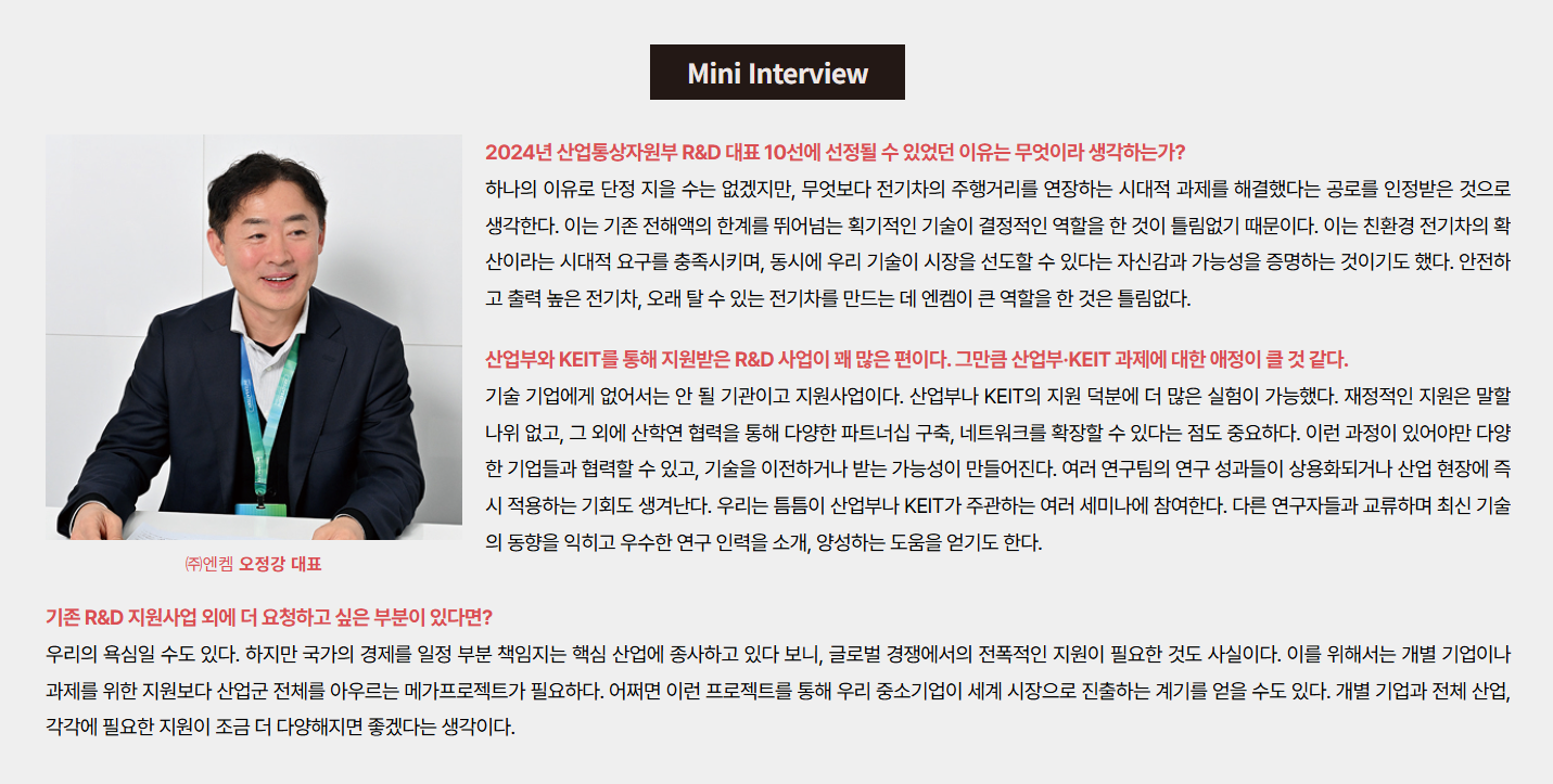 1. 한국산업기술평가원(KEIT) 4월호 매거진, 엔켐편,