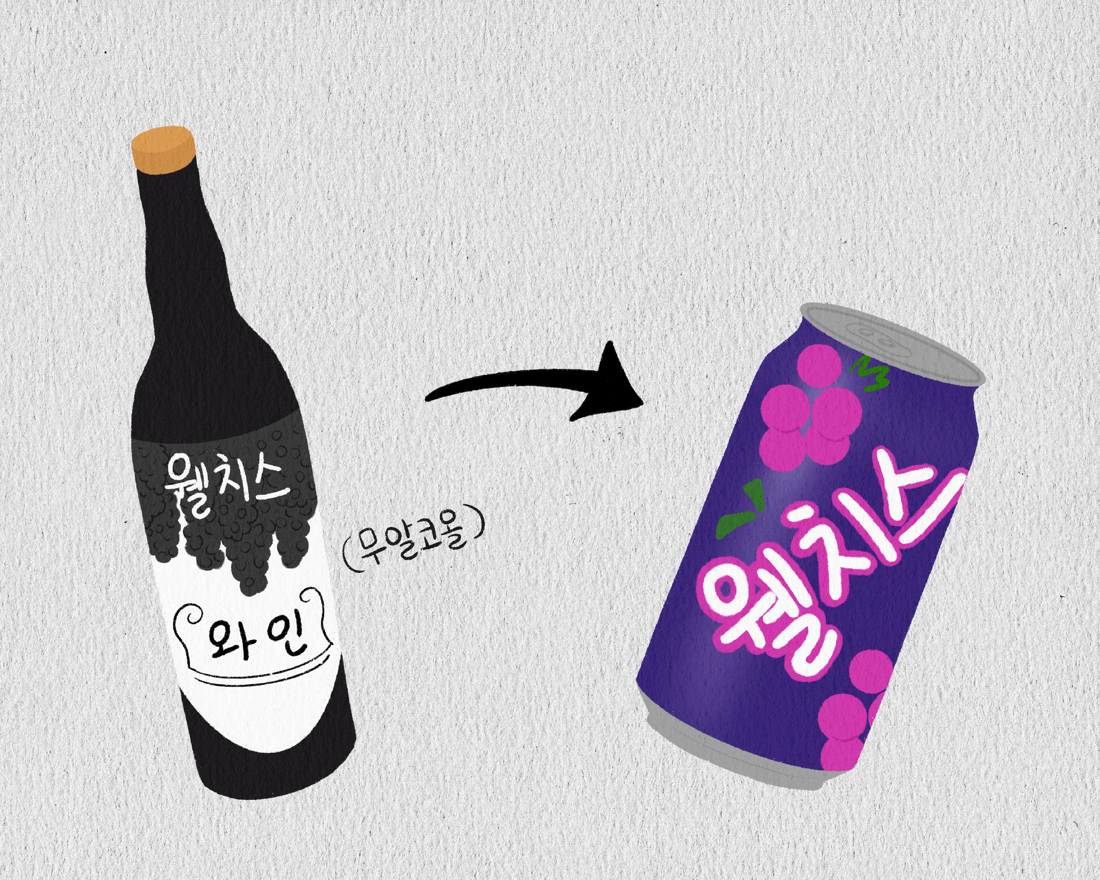쿠키: 처음부터 잘 된 건 아니래요. 당시엔 무알콜 와인이라는 개념이 너무 낯설었거든요. 그러다 훗날 웰치의 아들이 무알콜 와인이라고 하지 말고 ‘포도 주스🧃'로 팔아보자는 아이디어를 냈어요. 이렇게 리브랜딩하고부터는 대박이 난 거예요!