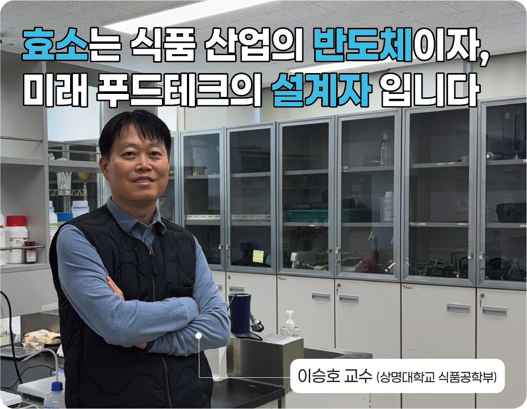 최근 식품 산업은 단순한 ‘제조’를 넘어 기술이 중심이 되는 ‘푸드테크(Food-tech)’ 시대로 빠르게 이동하고 있습니다. 그 변화의 한가운데에서 이론과 산업 현장을 모두 경험한 상명대학교 식품공학부 이승호 교수를 만났습니다. 그가 걸어온 길, 효소에 대한 철학, 그리고 식품 기업이 앞으로 고민해야 할 방향에 대해 이야기를 나누었습니다. 삶의 궤적에서 발견한 ‘효소’라는 숙명 이승호 교수는 학계에 몸담기 전, 글로벌 효소 기업인 노보자임스(Novozymes)와 국내 대표 식품 기업인 SPC 그룹 연구소 등을 거치며 현장의 치열함을 온몸으로 겪어온 ‘실천적 지식인’입니다. 그가 효소라는 분야에 깊은 매력을 느끼게 된 계기는 무엇일까요? “효소는 참 독특한 존재입니다. 눈에 보이지 않지만, 식품의 성질을 완전히 바꾸어 놓죠. 과거 글로벌 효소 기업에서 근무하며 효소가 가진 엄청난 고부가가치에 놀랐습니다. 마진율이 90%에 달하는 제품을 보며, 이것이 바로 기술의 힘이라는 것을 깨달았죠. 라면이나 과자 한 봉지를 팔아 남는 이윤과는 차원이 다른 세계였습니다.”