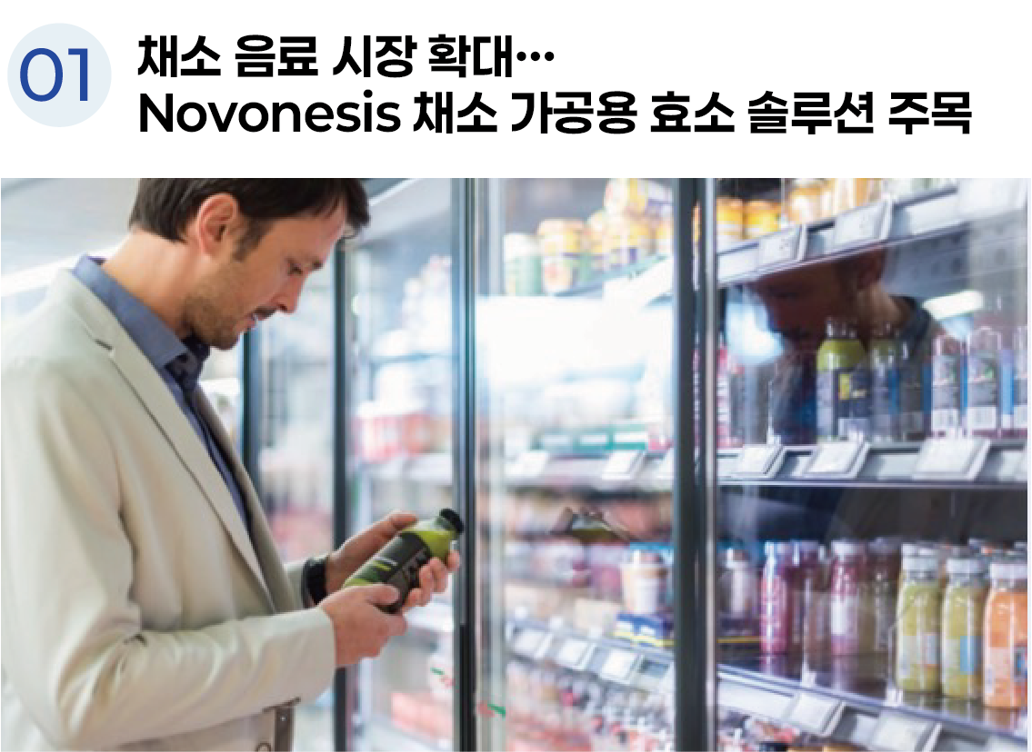 노보네시스의 채소. 과채 음료용 효소 솔루션에 대한 적용 가이드 및 샘플 테스트가 필요하시면 언제든지 대종자임스로 문의 주세요. |