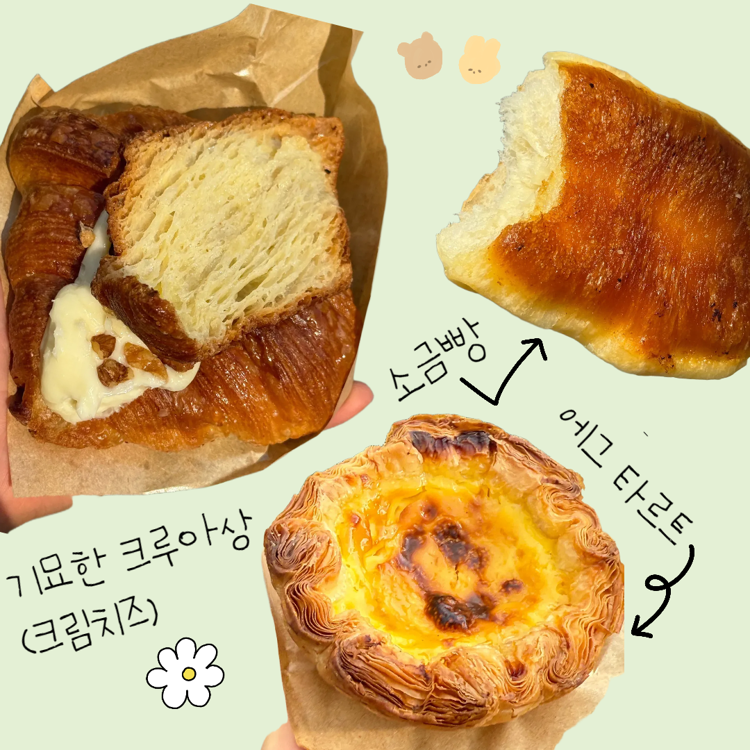 대표메뉴 소금빵, 크루아상, 깜빠뉴, 에그타르트
