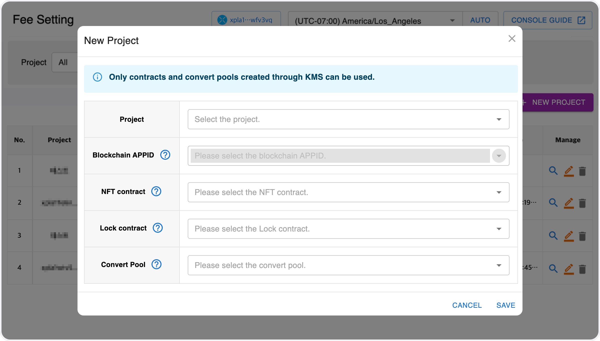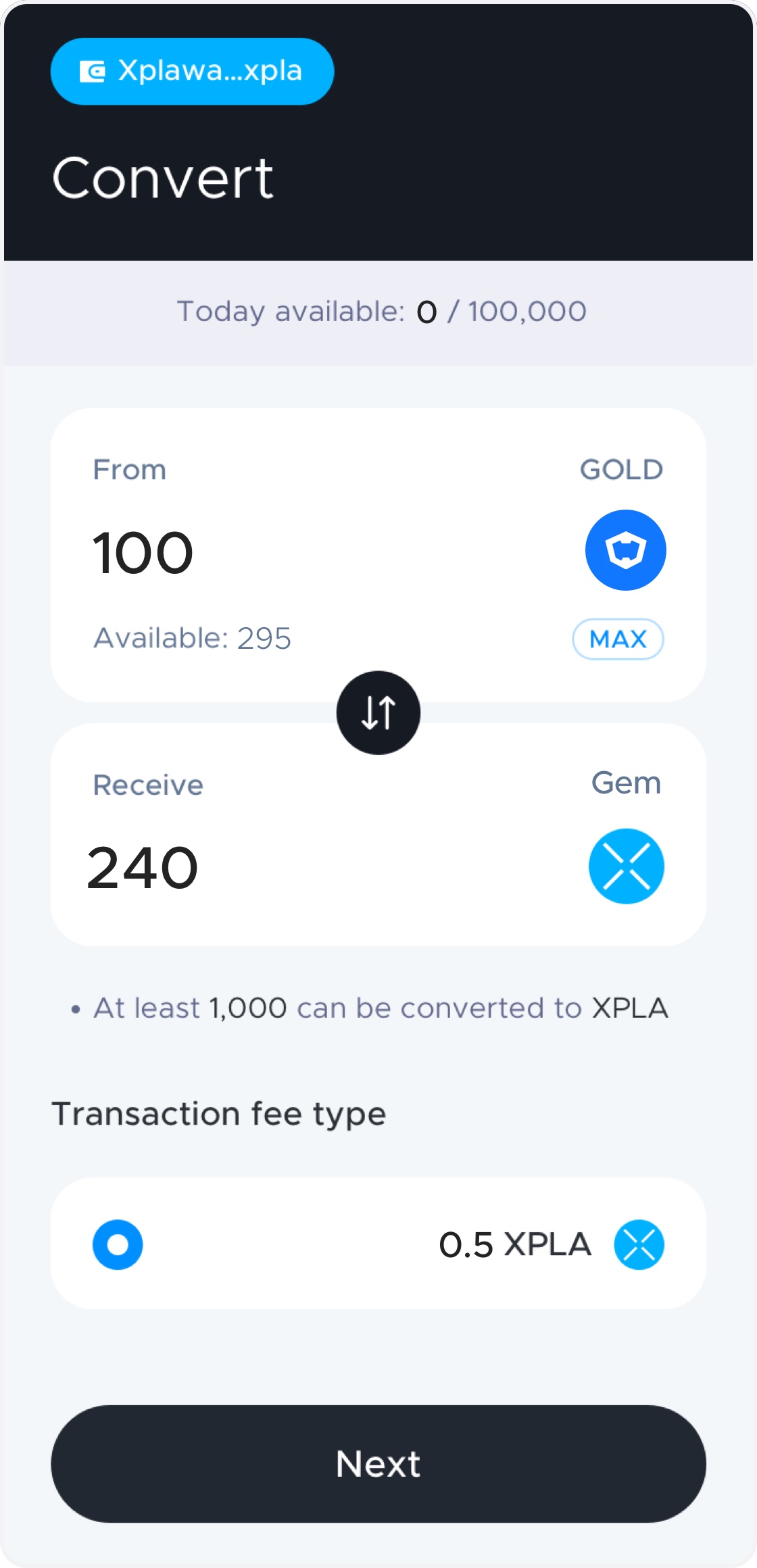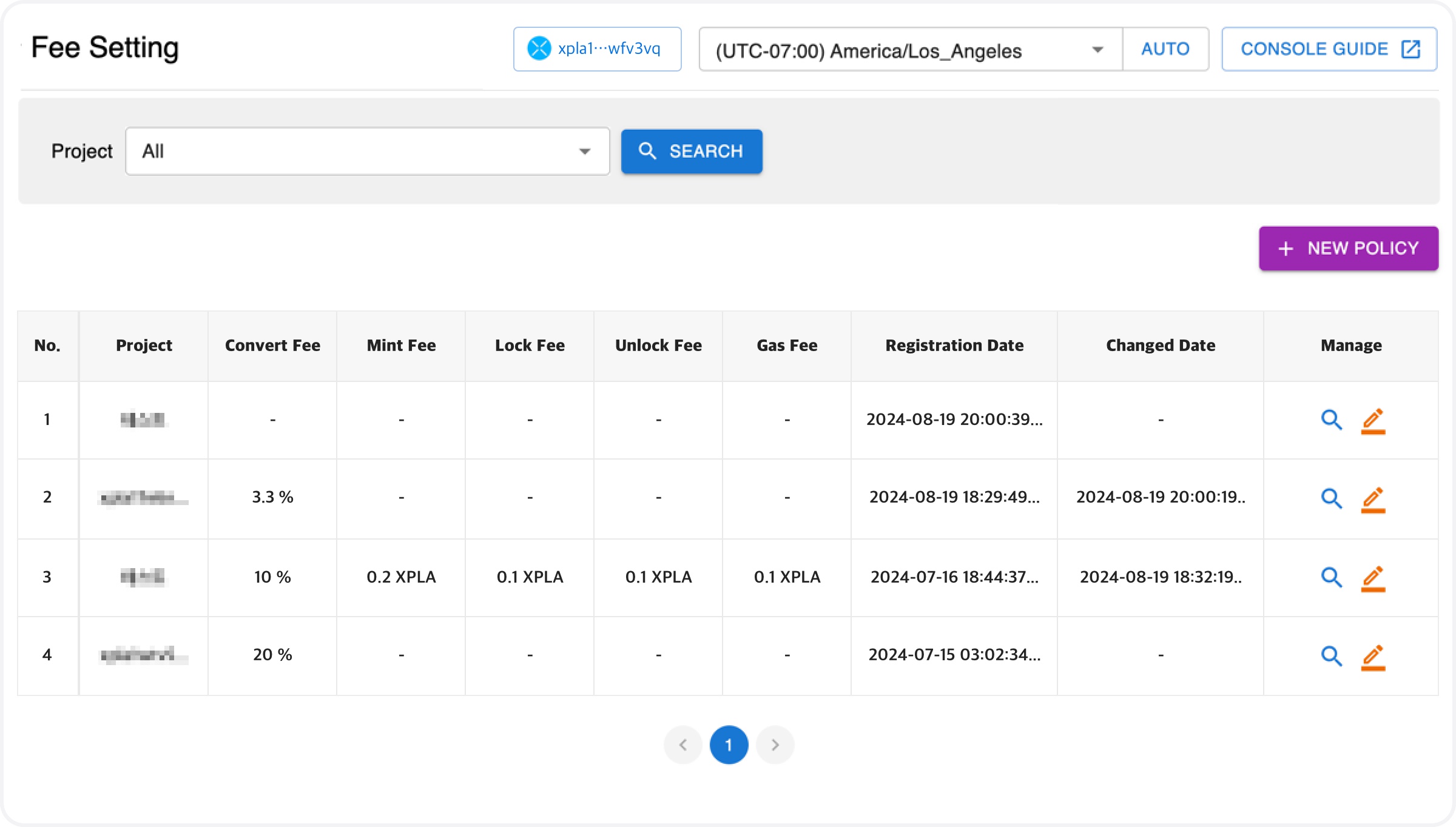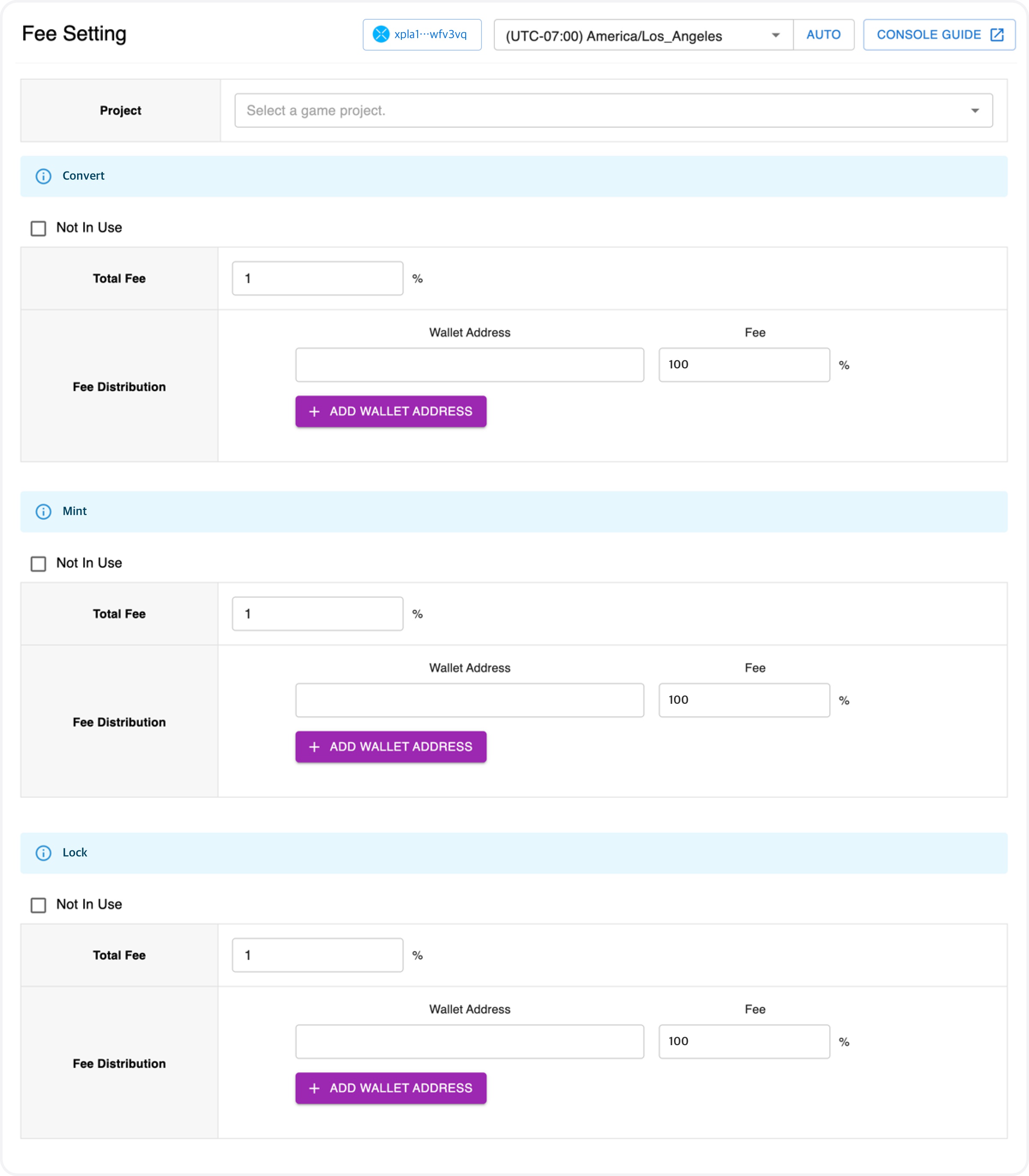 XPLA Webview eliminates the requirement to create a separate website for users by providing UI/UX for conducting blockchain activities with a single API call. (List of blockchain functions: minting, converting, locking/unlocking, and burning) To use XPLA Webview, configure the newly added Web 3 project operation and fee setup menus in the console. (Path: Console > Blockchain > XPLA).
