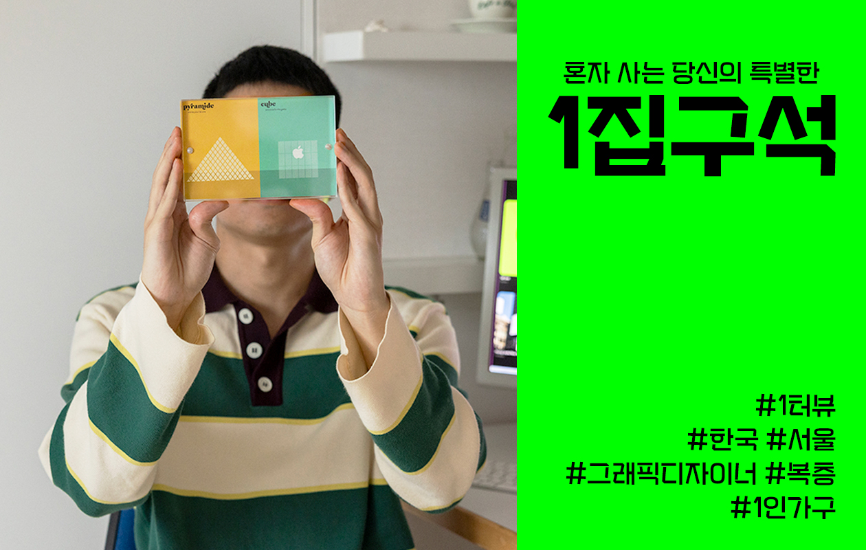 집은 그곳에 사는 사람을 닮는다고 하죠? 개개인의 취향과 생활 방식, 그동안 걸어온 발자취가 그대로 쌓인 공간이니 그럴 수밖에요. 오늘의 1집러는 그래픽디자이너로, 일주일에 이틀은 집에서 업무를 처리하는 ‘재택러’입니다. 일과 휴식, 창작이 공존하는 디자이너의 집은 어떤 모습일지, 함께 들어가 볼까요?🏠🔎