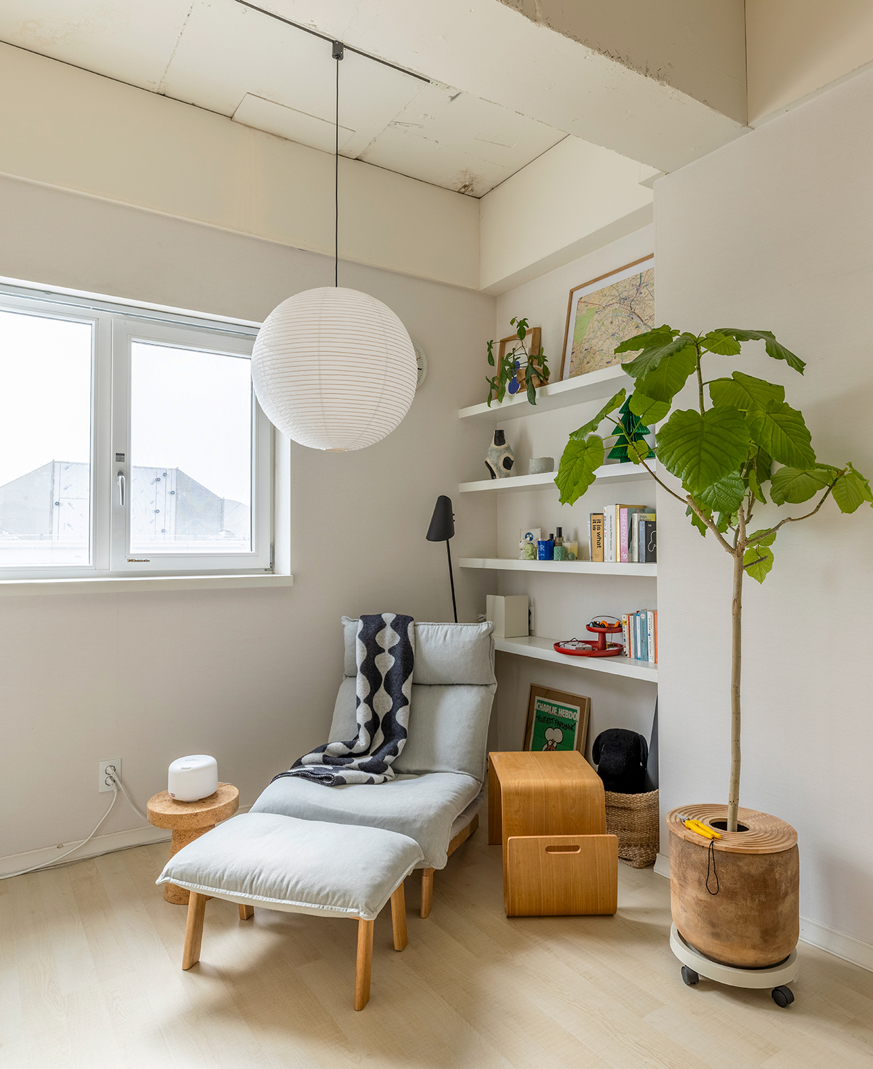 재택근무, 휴식, 창작 공간이 조화롭게 공존하는 그의 집은 작지만 실용적이고 멋스러운 매력을 품고 있어요
