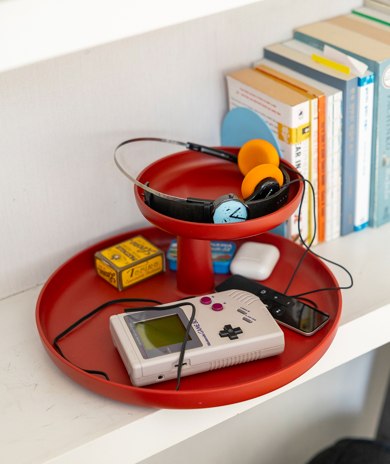 👦🏻 독립 초기에는 평소 좋아하던 인더스트리얼 무드 아이템으로 꾸몄어요. 하지만 막상 머물러보니 집 특유의 아늑함은 없고 차가운 느낌만 들더라고요. 사람이 사는 공간에는 따뜻함을 주는 요소가 필요하단 걸 그때 깨달았죠. 이후 살림살이를 하나씩 바꿨어요. 거실 테이블과 스툴은 자작나무로 만든 빈티지 아르텍 제품으로 바꾸고, 2년 전부터는 식물도 하나씩 들이며 집에 생기를 더했습니다.