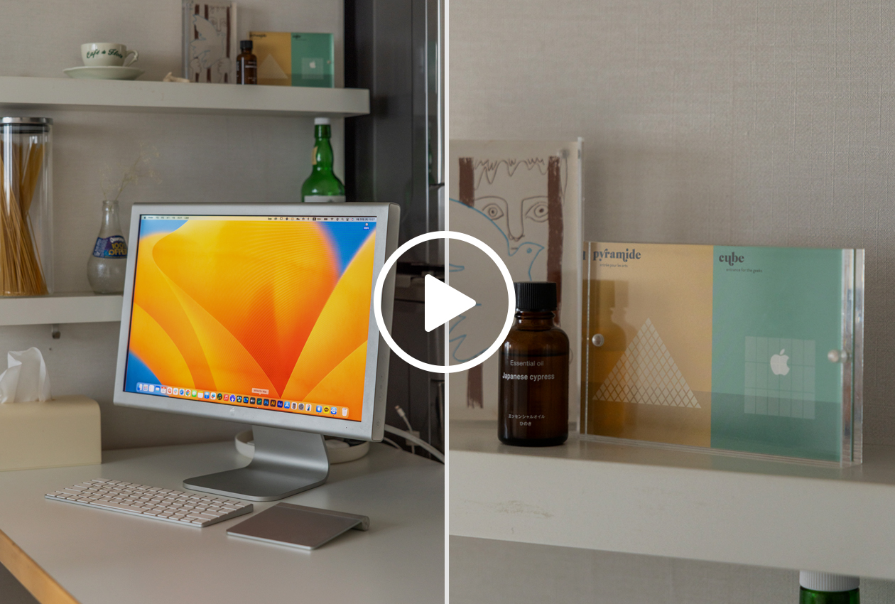 🖌️ 특별히 아끼는 소장 아이템이 있다면 알려주세요. 👦🏻 중학생 시절 제가 다니던 미술학원 앞에 작은 디자인 스튜디오가 있었거든요. 그곳 디자이너들이 사용하던 모니터가 바로 이 애플 제품이었죠. 어린 마음에 이 모니터가 멋져 보였는데, 몇 년 전 빈티지 시장에서 우연히 이 모델을 발견하고 기쁜 마음으로 집에 데려왔어요. 워낙 구형 모델이라 성능은 웹서핑 정도에 그치지만, 동경하던 마음 때문인지 자꾸 애착이 가네요.