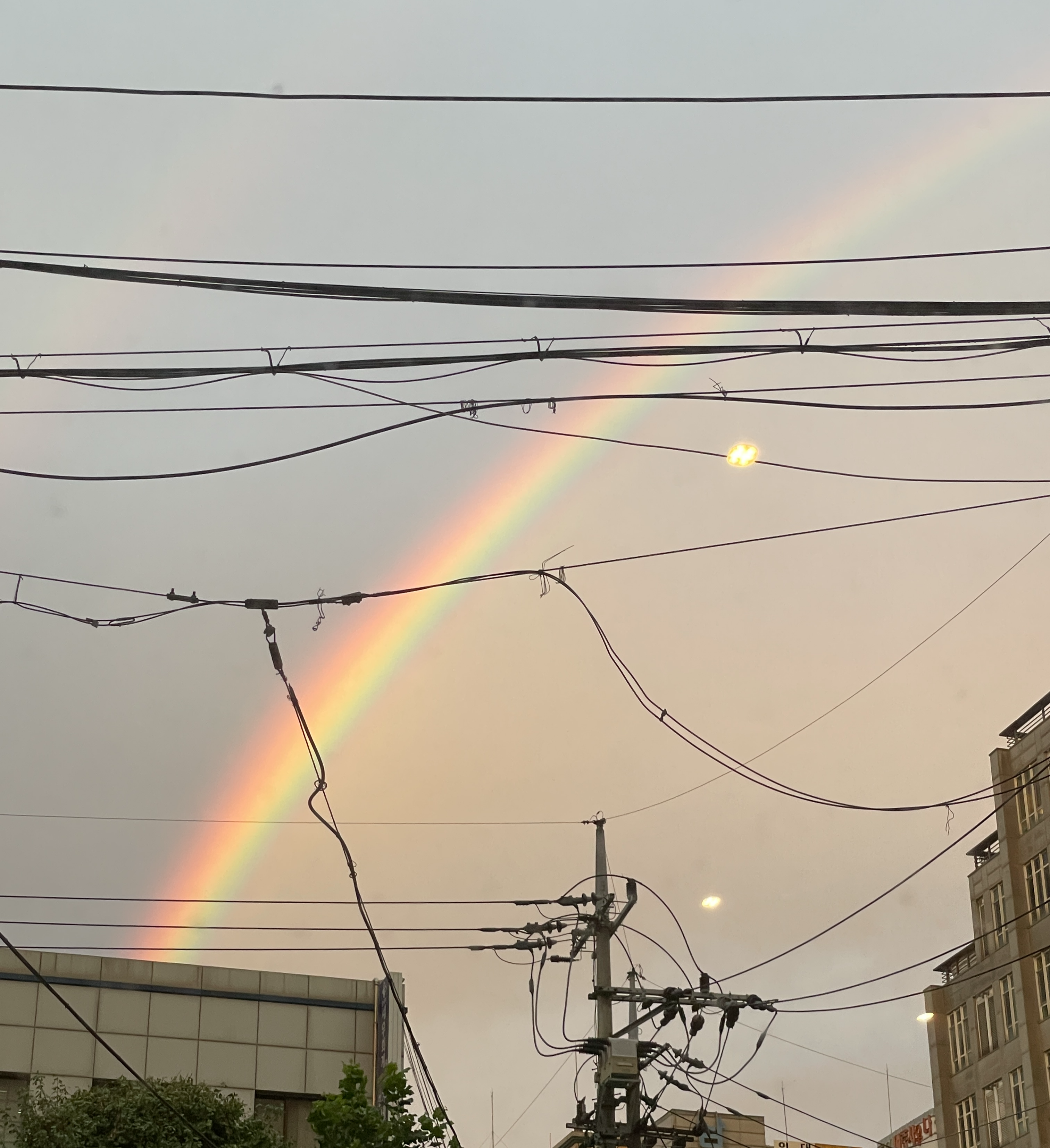 ์ฑ๊ฑฐ๋ ธ๋ค. ์์ ์ ๋ฐ๋ผ ์ฐฝ ๋ฐ์ ๋ด๋ค๋ณด๋ ์ปค๋ค๋ ๋ฌด์ง๊ฐ๊ฐ ๋ ์์๋ค. ๋ฌด์ง๊ฐ๊ฐ ์ฌ๋ผ์ง ๋๊น์ง ์ณ๋ค๋ดค๋ค. ์ด๋์ ๋น๊ฐ ๊ทธ์ณค๋ค!