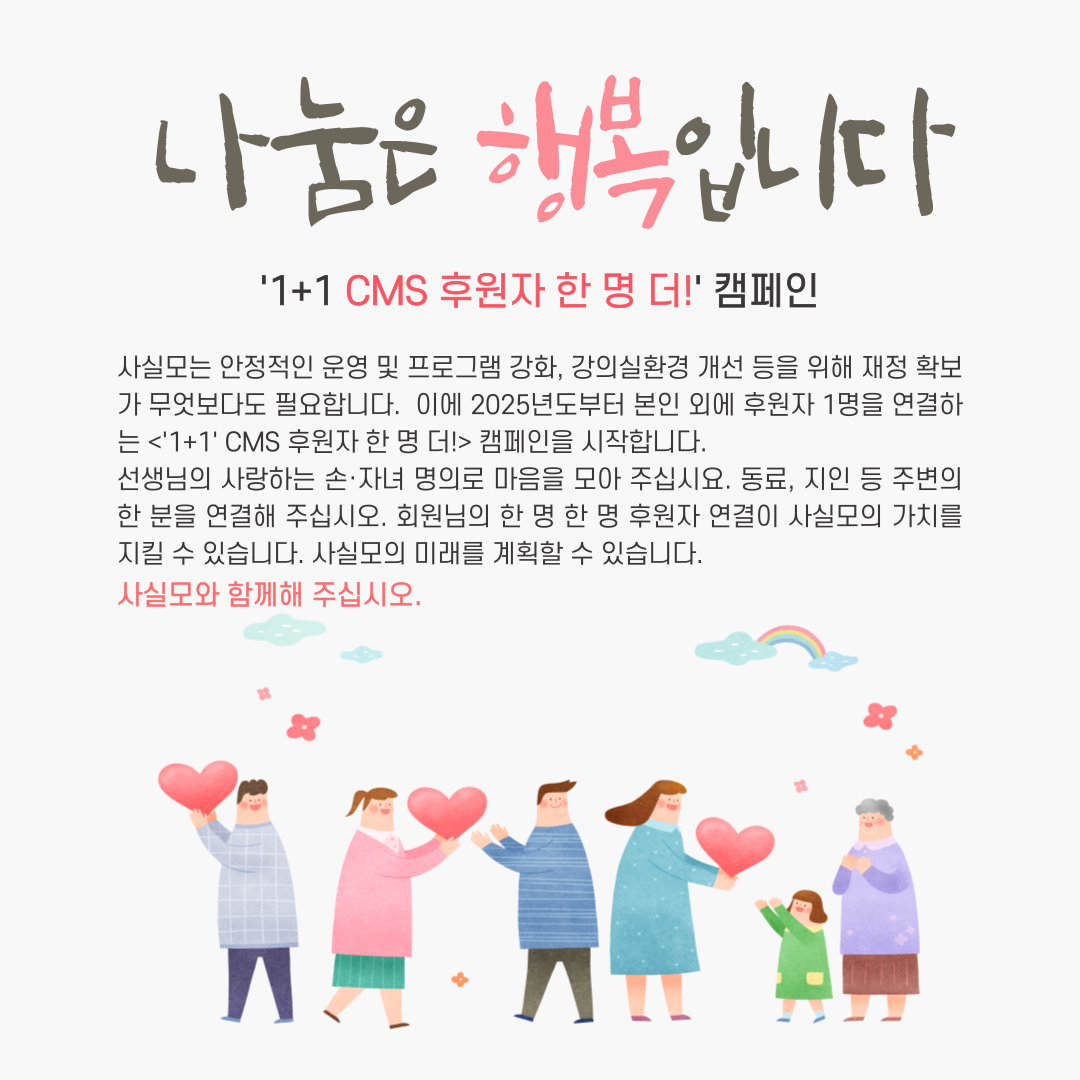 사실모를 위해 뜻깊은 후원을 해주신 여러분께 진심으로 감사드립니다.