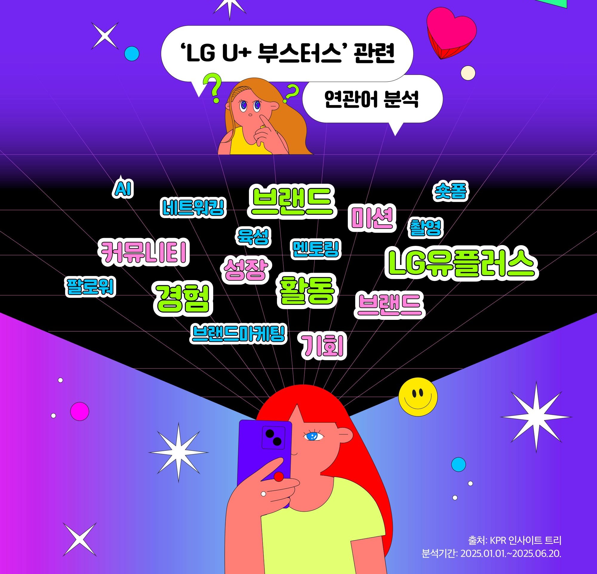 소셜 빅데이터를 통해 LG유플러스 ‘부스터스’에 대한 주요 연관어를 분석한 결과, ‘경험’, ‘활동’, ‘기회’ 등이 도출되었습니다. 이를 통해 부스터스 캠페인이 크리에이터들에게 실질적인 성장 기회로 인식되고 있음을 알 수 있습니다. 또한 ‘육성’, ‘멘토링’, ‘네트워킹’과 같은 키워드를 통해, 이 캠페인이 단순한 일회성 지원을 넘어 전문성 향상과 커뮤니티 형성을 중시하는 지속 가능한 성장 플랫폼으로 평가되고 있음을 보여줍니다.