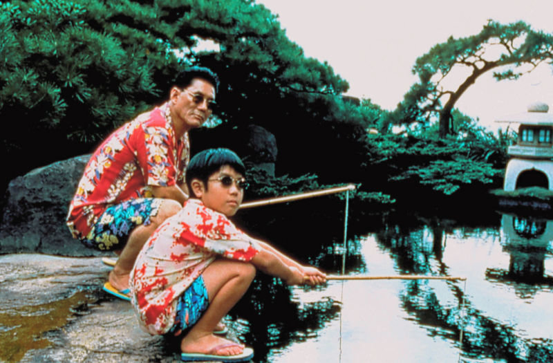가령 혼자 여행을 떠나려는 9살 마사오에게 야쿠자 아저씨와 함께 가라며 조력자를 붙여주는 이웃집 아주머니, 야쿠자 아저씨(그러니까 기타노 다케시 감독)가 마사오를 위로해주려 온갖 놀이를 벌이는 장면 등등.