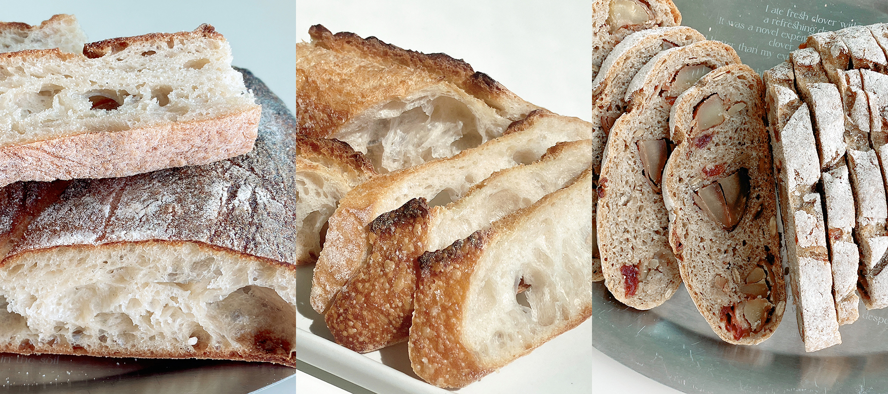 ์์ฌ๋นต์ ์ฌ๋ฃ๊ฐ ๋จ์ํด์. ๋ฐ๊ฐ๋ฃจ, ๋ฌผ, ์ฝ๊ฐ์ ์๊ธ์ด ์ ๋ถ์ฃ . ๊ฒฝ์ฐ์ ๋ฐ๋ผ ๋ฐํจ๋ฅผ ๋์ธ ์ด์คํธ๋ฅผ ๋ฃ๊ธฐ๋ ํ๊ณ ์. ์ฐ์ , ์คํ, ๋ฒํฐ๋ ์ ํ ๋ค์ด๊ฐ์ง ์์์. ์ํผํ ํ๋ฏธ๊ฐ ๋๊ปด์ง๋ ์ฌ์๋์ฐ๋ ์ฌ๋ฃ๊ฐ ๋์ฑ ๋จ์ํด์. ๋ฐ๊ฐ๋ฃจ์ ๋ฌผ, ๋จ ๋ ๊ฐ์ง ์ฌ๋ฃ๋ฅผ ํ์ฉํ ๋ฅด๋ฐฉ(Levain, ์ฒ์ฐ ๋ฐํจ์ข