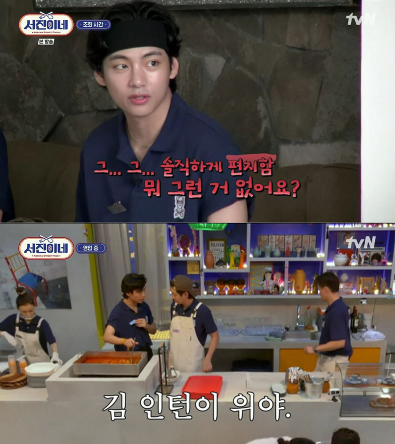 뷔는 서진이네의 MZ 막내 인턴으로 등장해 솔직하면서 엉뚱한 면모로 시청자들을 사로잡았어요.