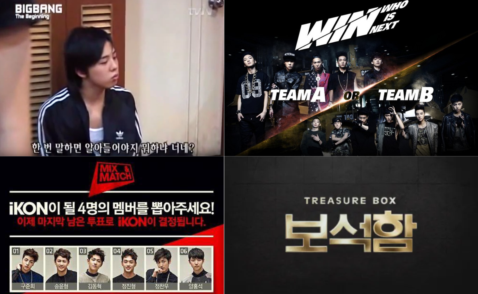 빅뱅, 위너, 아이콘, 트래져 모두 서바이벌을 거쳐 데뷔한 그룹이야.
