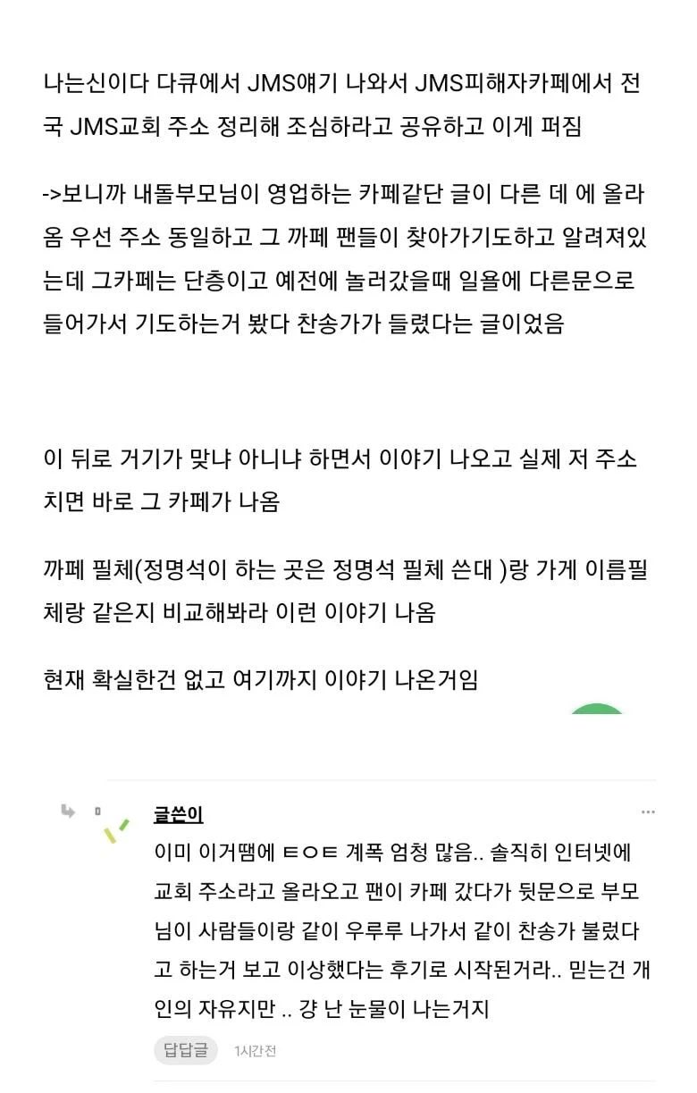 🔥 불판 🔥 'JMS 쇼크' 사이비 집안 들통난 DKZ 경윤